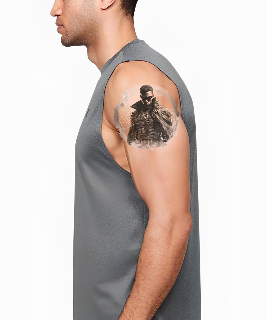 Ponořte se do spojení Marvelu a anime s tímto osvěžujícím tetovacím motivem! Zažijte vzrušující napětí superhrdinů, konkrétně ztvárněné v podobě Bladea. Tento ilustrativní mistrovský kousek nabízí jedinečné kouzlo, které propojuje světové komiksové ikony s kouzlem hravého anime.