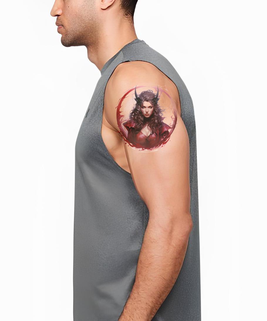 Odhalte svého vnitřního superhrdinu s tímto živým tetovacím motivem Scarlet Witch. Inspirováno mocnou čarodějkou z Marvelu, tento ilustrativní design propojuje ikonické anime techniky s ohnivým vzhledem Scarlet Witch. Výrazná červená paleta symbolizuje její krevní pouta a odvážné schopnosti. Ideální emblém pro fanoušky Marvel žen.