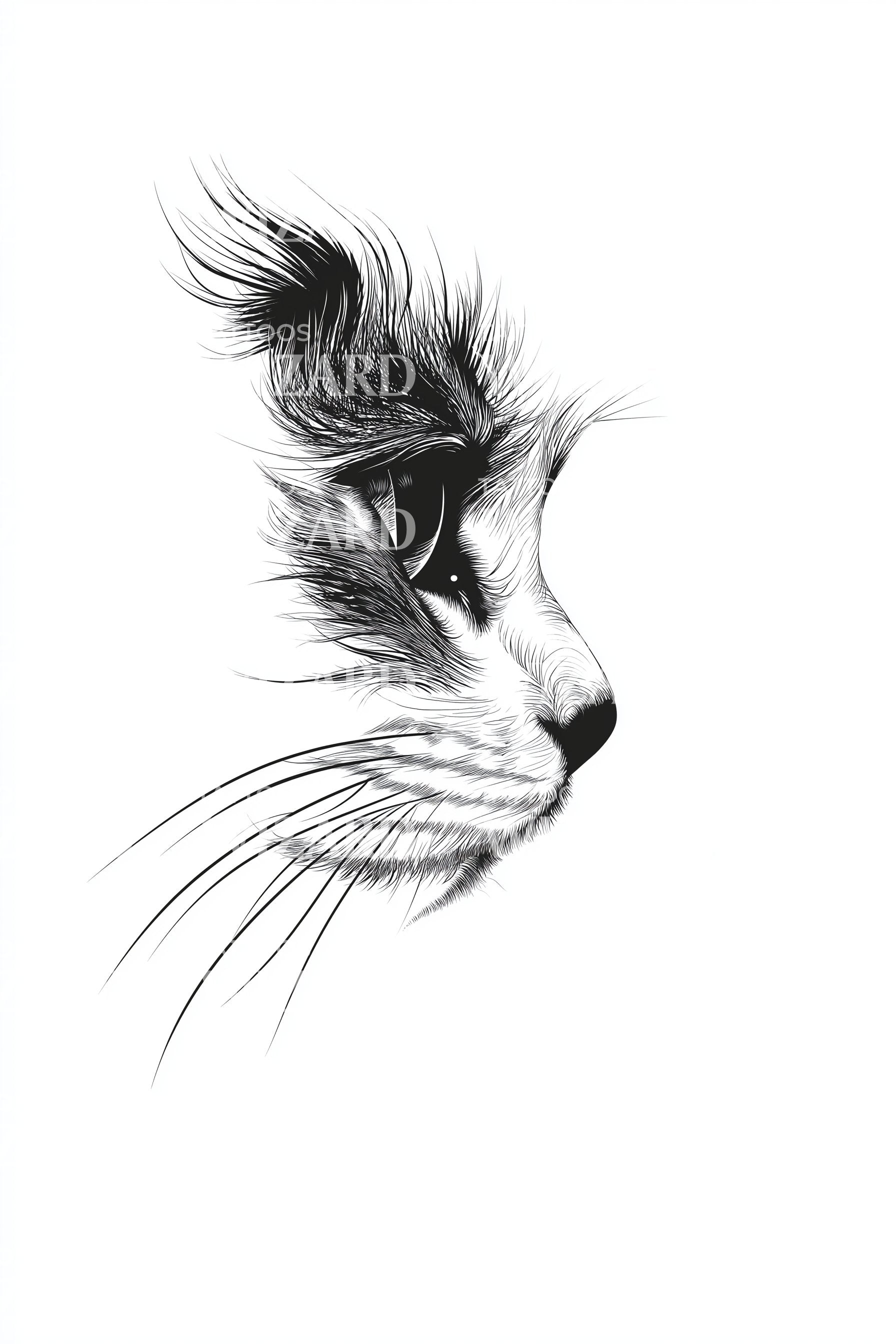 Feather-light sketch lines sculpt a feline profile, fur teased by wind, whiskers whispering toward open space. Symbol of quiet vigilance and untamed grace, the cat gazes forward, carrying intuition and independence. Wearing this design feels like breathing steadiness in motion, a poised spirit ready for silent leaps ahead.