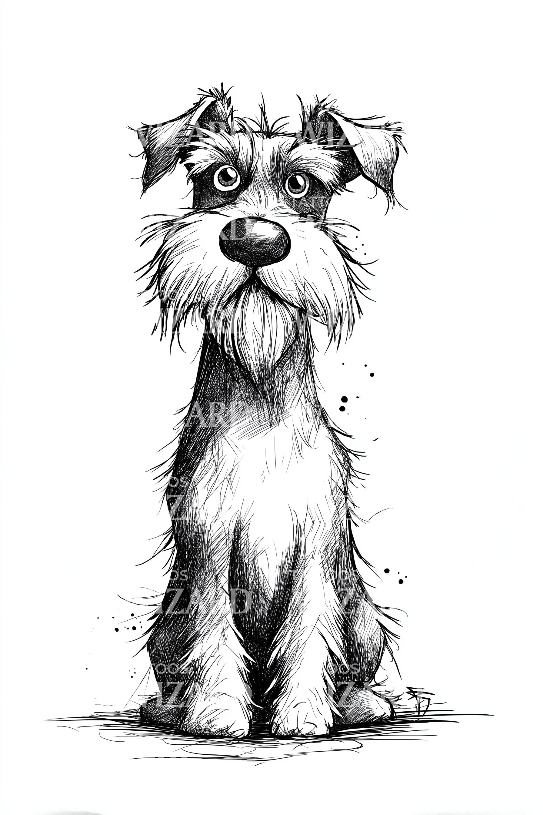 Dopřejte si svou lásku ke zvířatům s tímto roztomilým návrhem tetování ve stylu skici, který zobrazuje načechraného šnaucera. Jeho jedinečný roztomilý vzhled vyzařuje z pečlivých detailů, které zachycují každý kousek tohoto milého psího plemene. Je to dokonalý způsob, jak vyjádřit svou náklonnost ke svému čtyřnohému příteli.