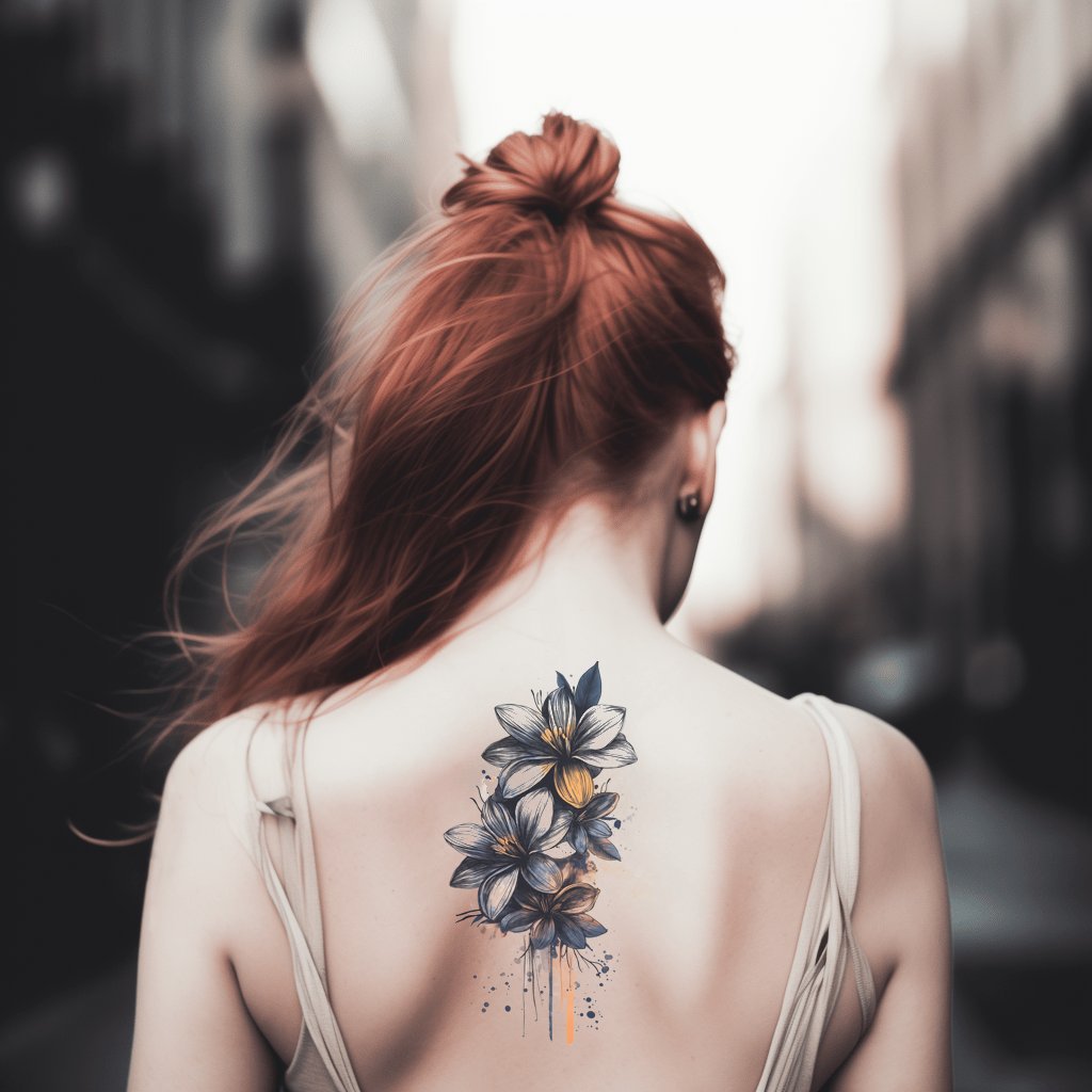 Zažijte spojení přírody a umění s tímto dramatickým tetováním ve stylu akvarelu. S výbuchy půlnoční námořnické modři vyzařujícími z nádherně namalované magnólie toto tetování zachycuje podstatu květinového světa. Jeho dramatické, přesto jemné provedení je jedinečným kouskem do vaší sbírky kožního umění.