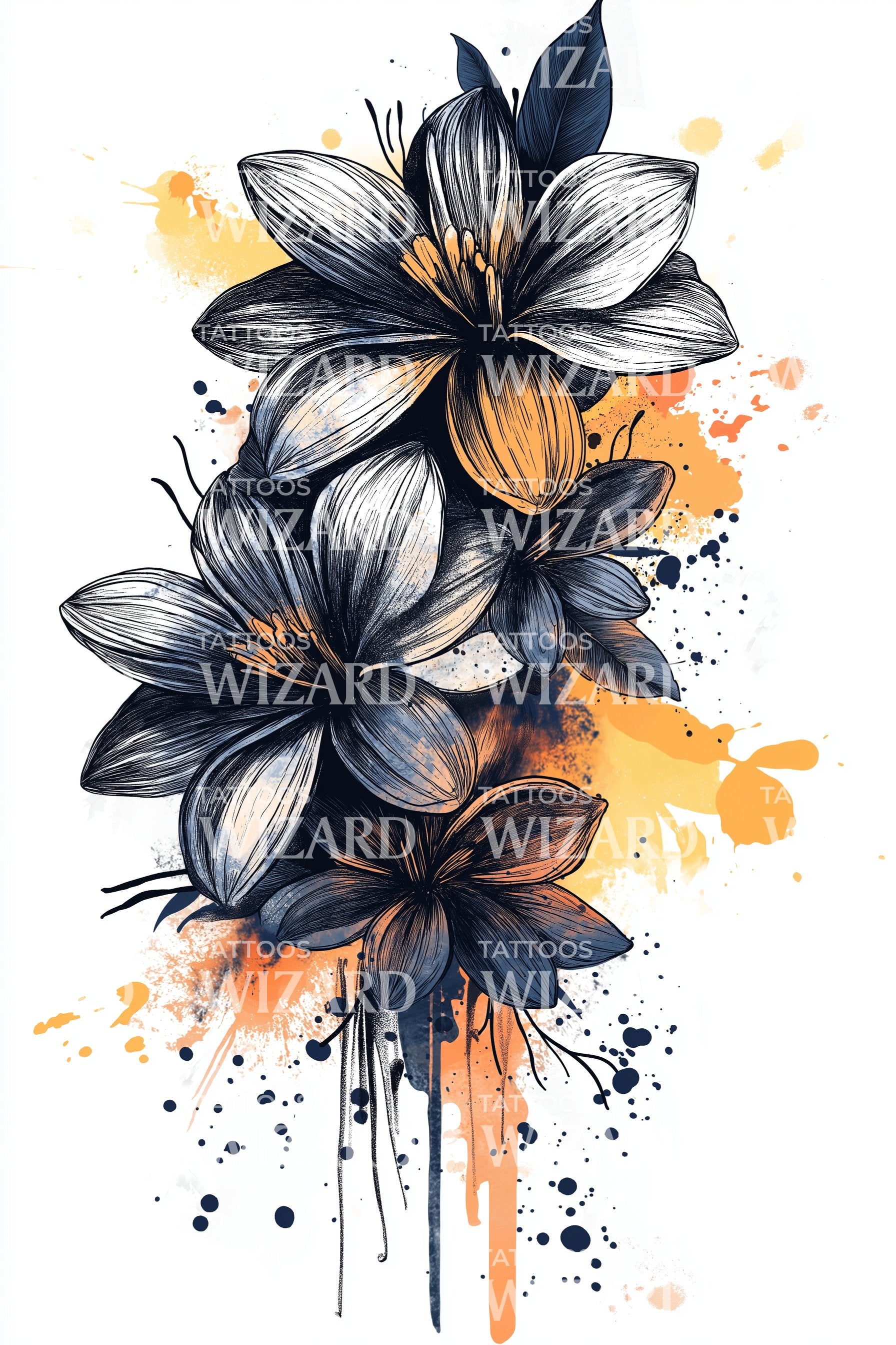 Ilustrace tetování Výbuch půlnoční magnólie