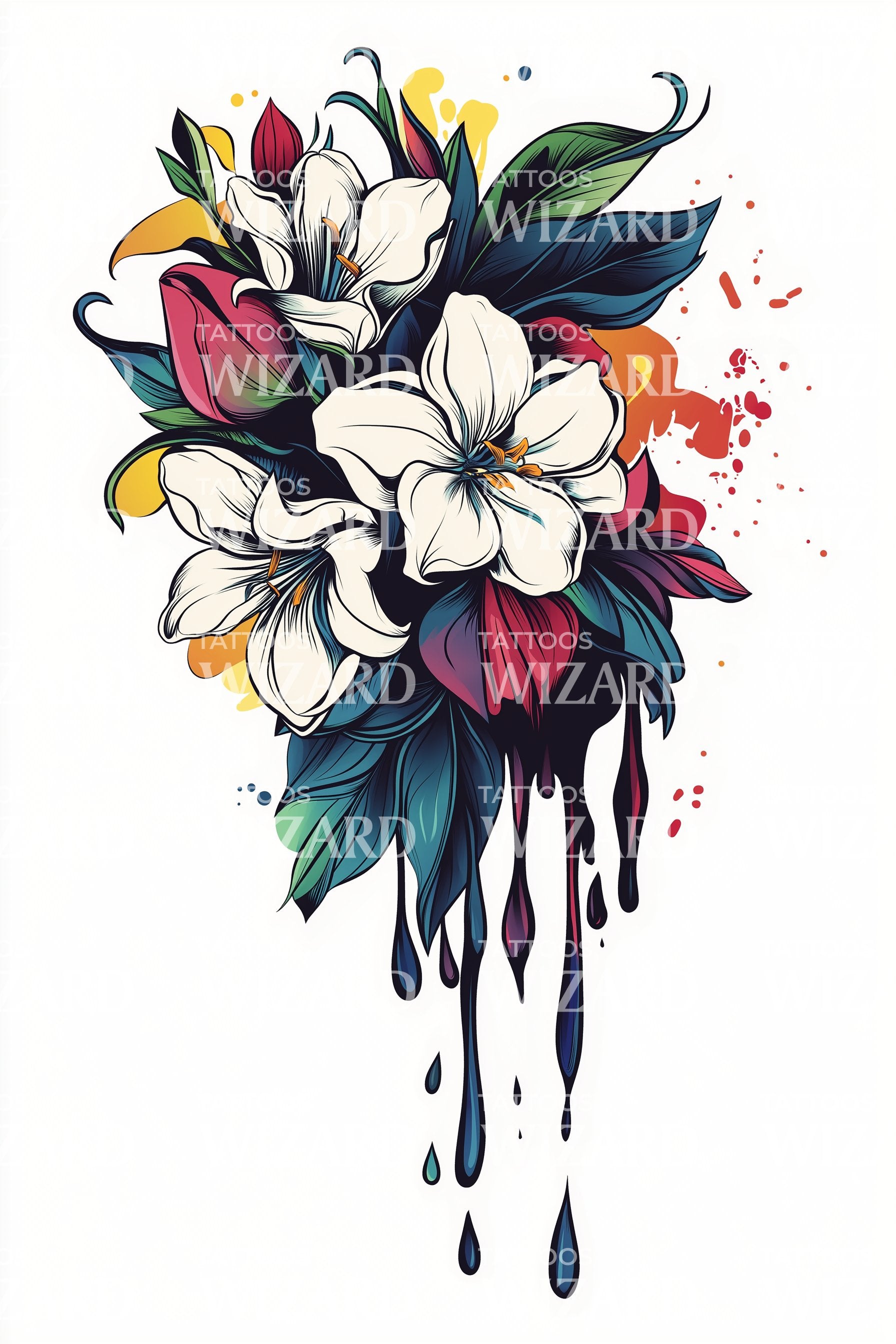 Tetovací návrh kytice Noir Plumeria Drip