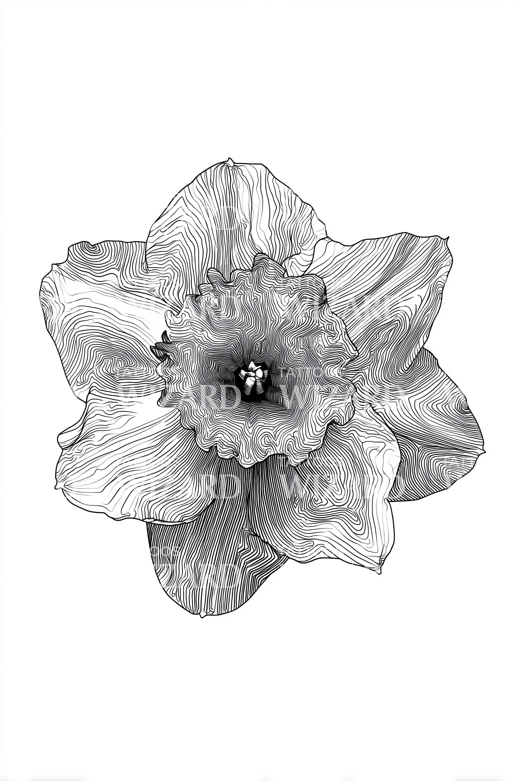 Tetovací návrh okvětních lístků narcisu se stínováním