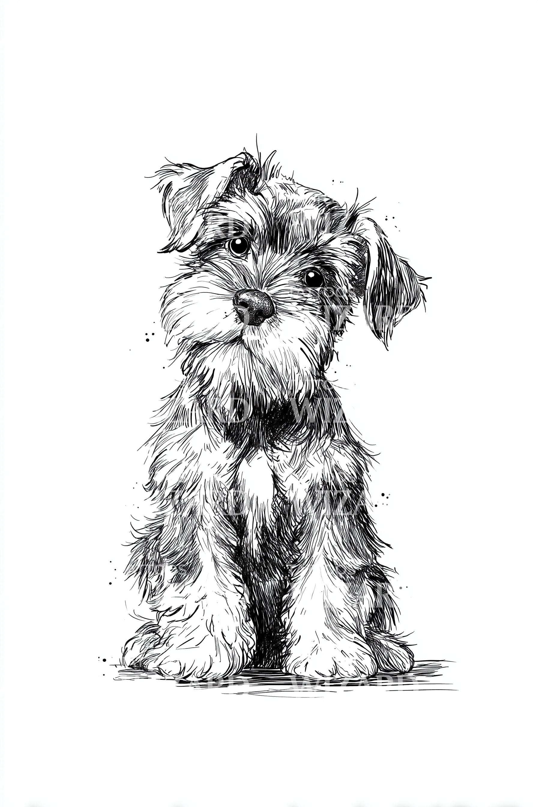 Tento hravý tetovací motiv šnaucera zachycuje rozcuchané kouzlo vašeho oblíbeného mazlíčka. Nakreslený s pečlivými detaily, přenáší na papír radostného ducha psa. Ideální volba pro milovníky psů, tento motiv slibuje vyjádřit tu roztomilou, hravou atmosféru, kterou na svém chlupatém příteli milujete.