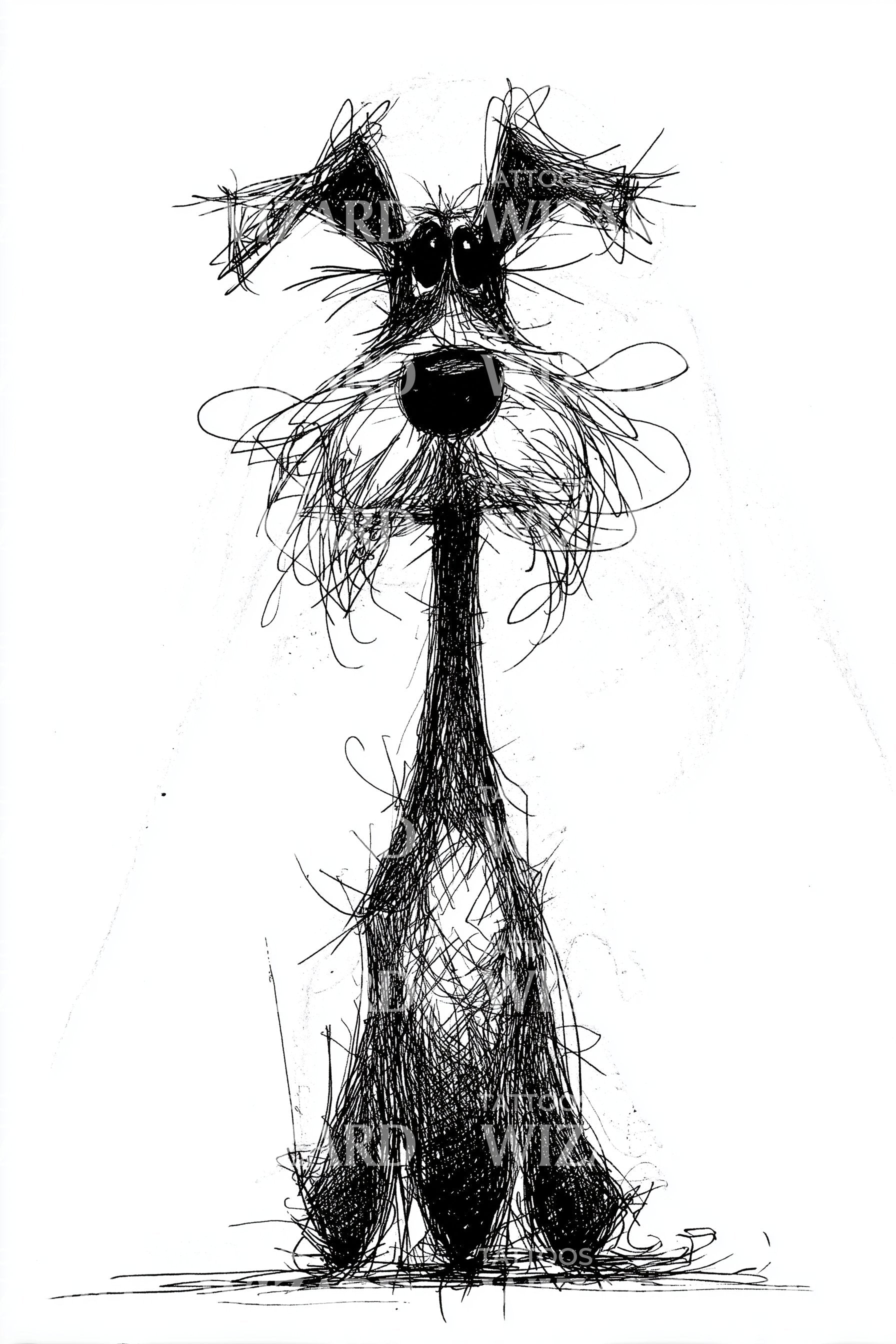 Ukažte svou lásku ke svému čtyřnohému příteli tímto tetovacím motivem ve stylu skici s kníračem. Zobrazuje věrnou a majestátní podstatu vašeho oblíbeného mazlíčka. Vysoké a hravé linie zachycují jedinečné kouzlo psa, tento design oslavuje milovanou, výraznou osobnost kníračů.