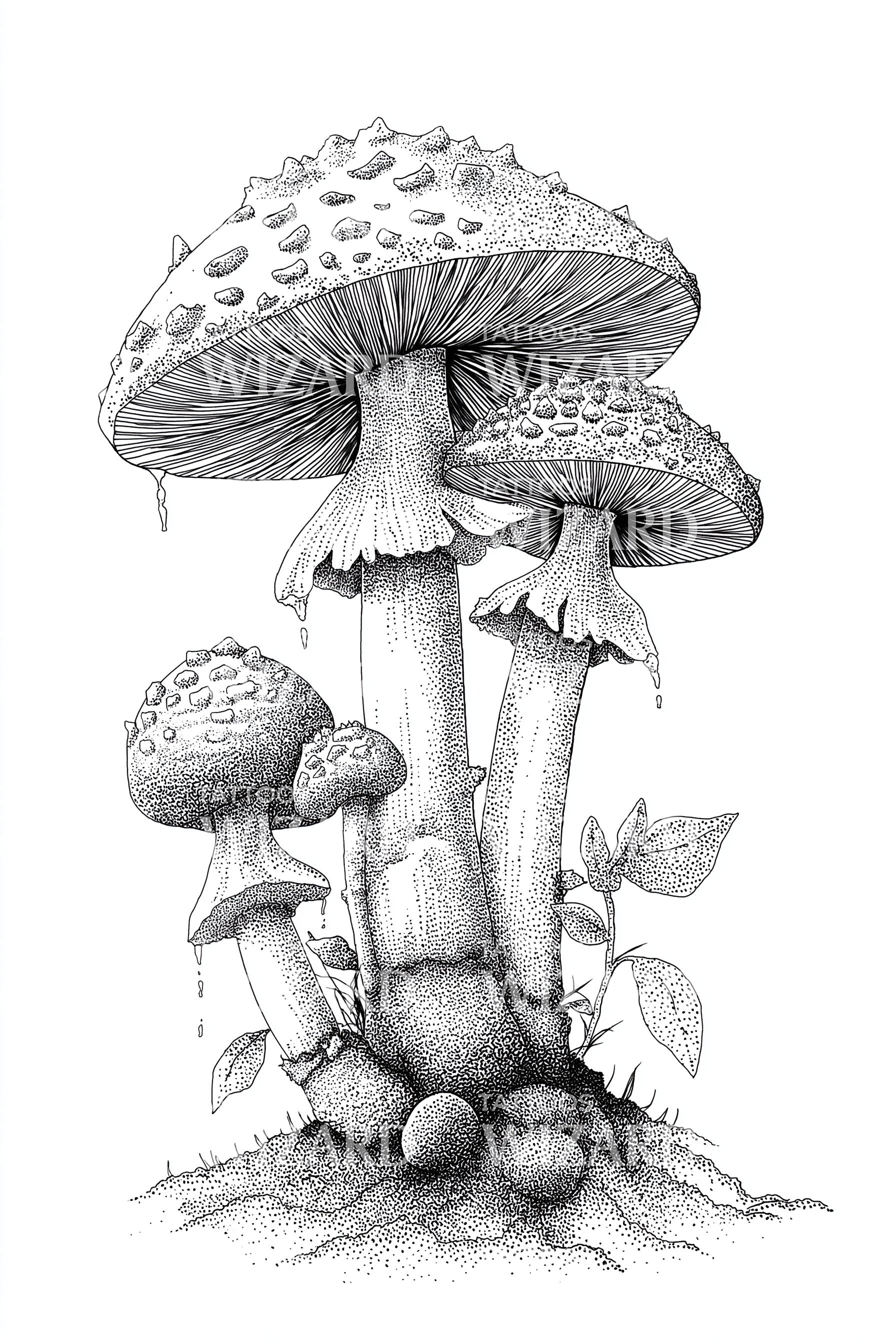 A cluster of mushrooms rising from meadow hush, a woodland oath to grow where life gets quiet and strange. Black&grey shading honors the unseen work beneath. For the one who thrives after endings, claiming tenderness with teeth. Let the soil remember your name.