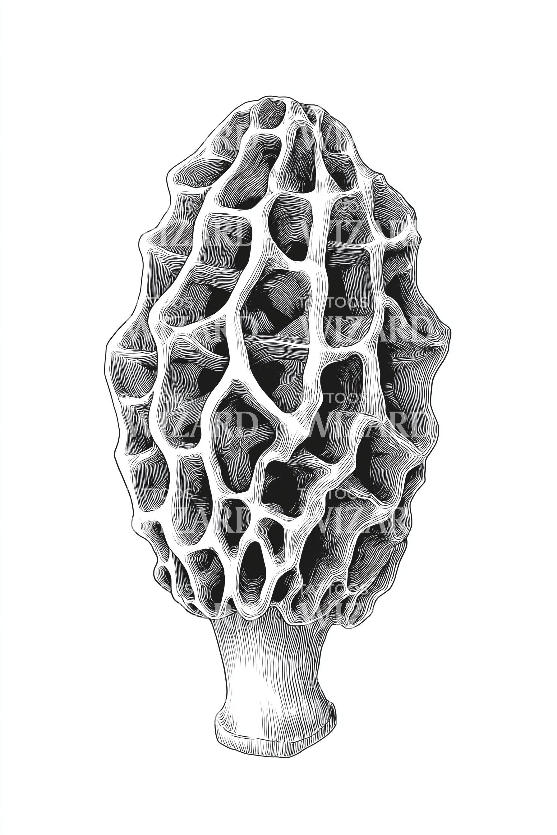 For the one who trusts quiet instinct, a morel mushroom becomes a vow to seek what hides in plain sight. Monochrome texture and patient shading honor the art of forage: nourishment earned, not given. “Let the dark teach your hands.” Black&grey truth, rooted and rare.