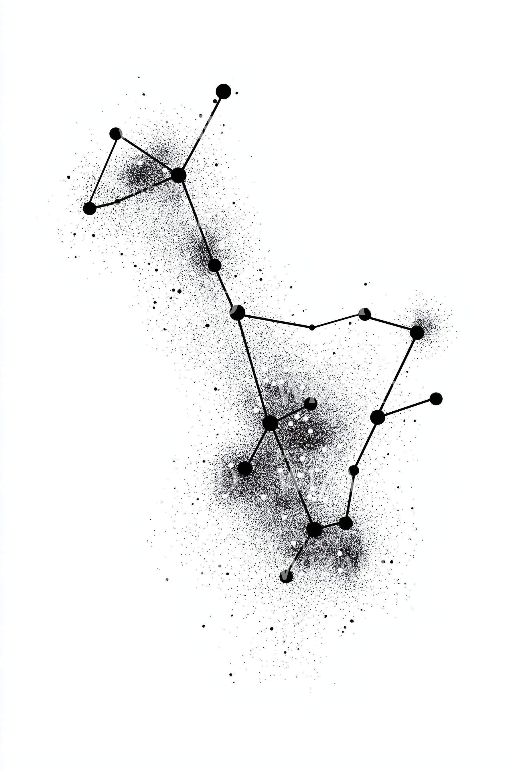 Stargazed linework forms a sketch constellation, bold points linked by fine segments, afloat in a dusting of night-sky speckles. Each star marks a choice, each connection a journey, charting personal navigation. Worn close, the piece feels like quiet astronomy, guiding courage, curiosity, and limitless sky through every night.