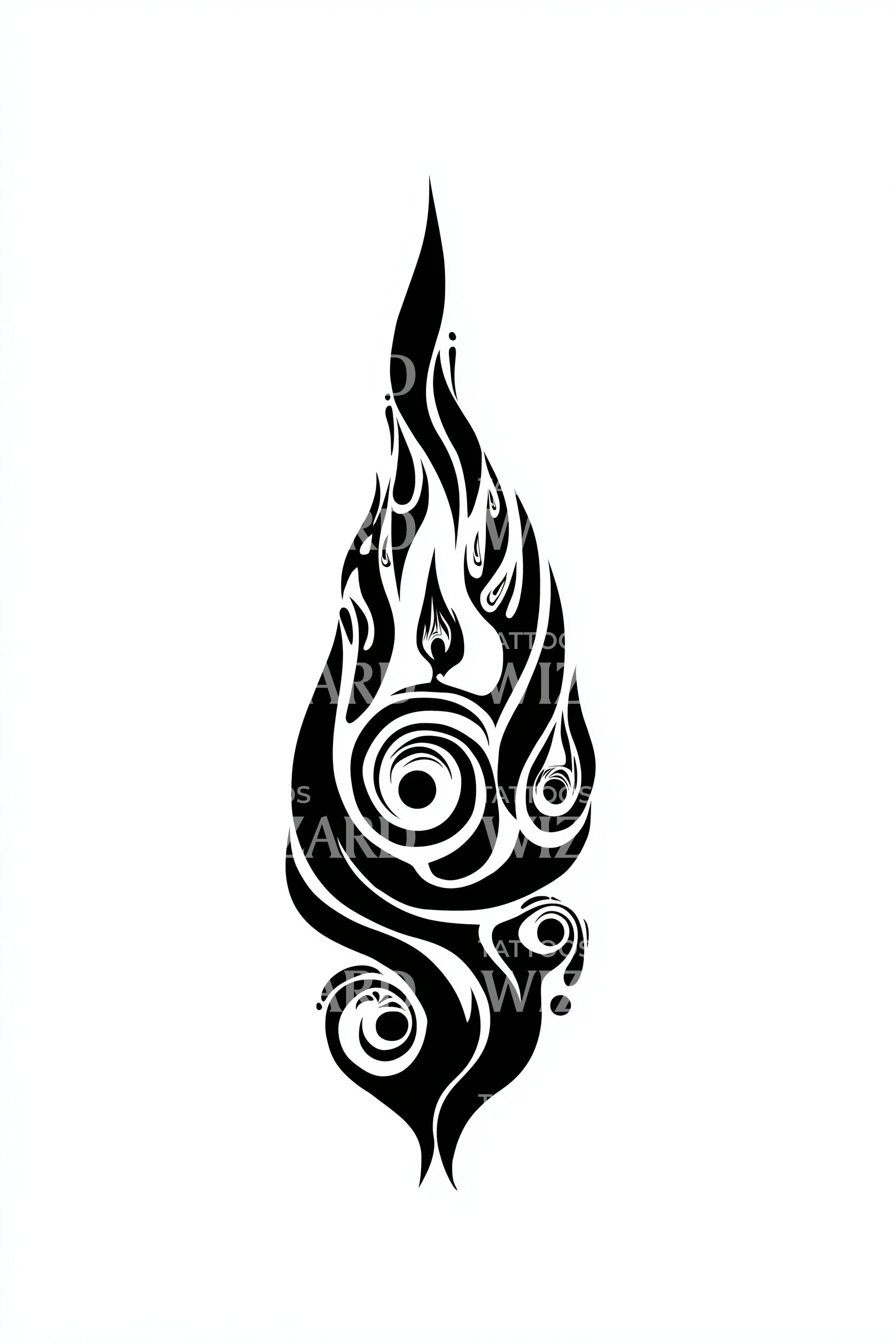 Tænd din ånd med vores mystiske stamme-tatoveringsdesign. Dette stykke kombinerer smukt intensiverede hvirvler og flammemønstre, der udstråler ild og begejstring. Besid en tidløs stammeappel, der indkapsler din brændende ånd og mystiske aura. Et design skabt til dem, der er ubesværet dristige og stærke.