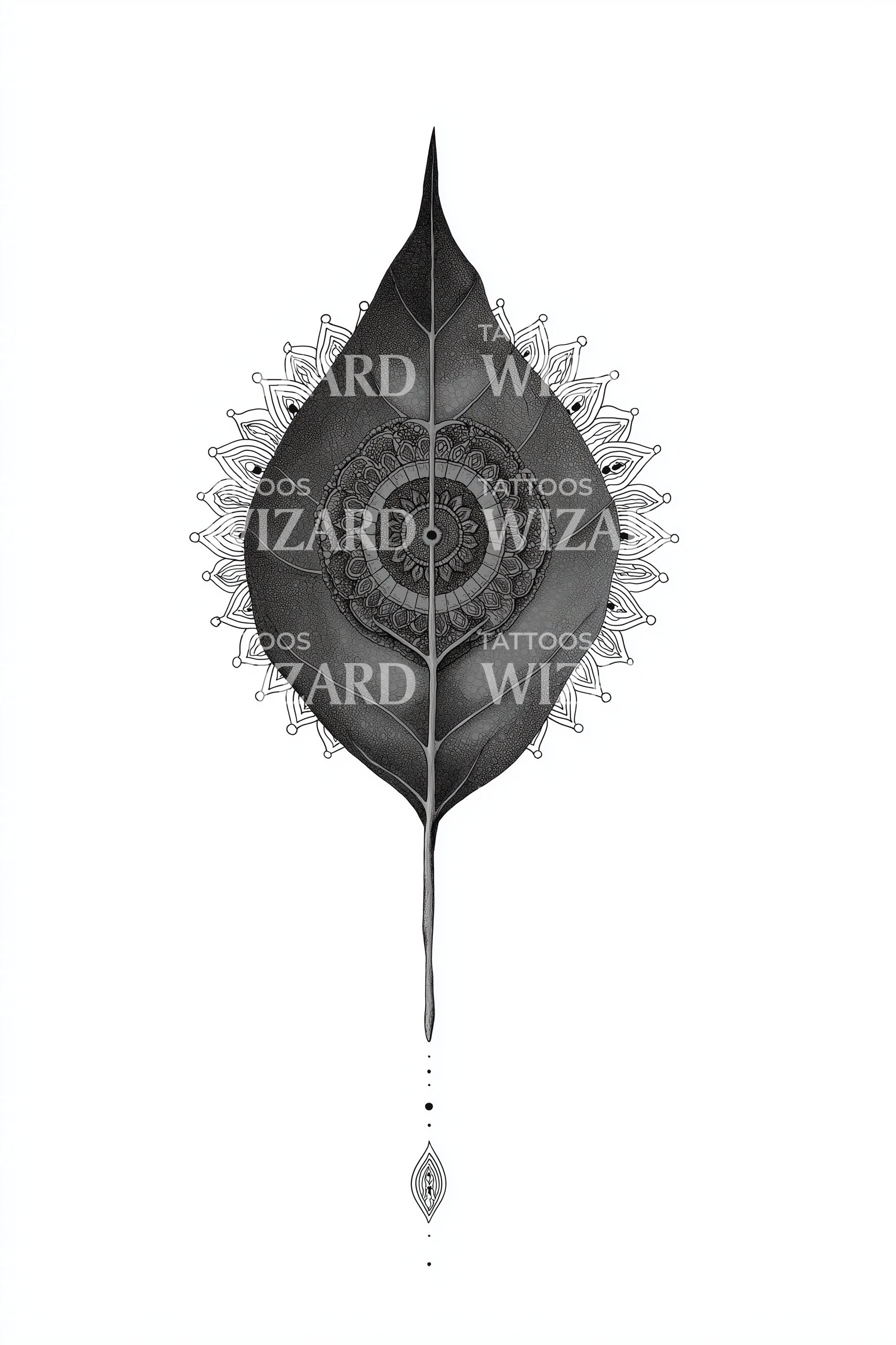Leaf and eclipse meet in blackwork shadow, a botanical mystic oath that says your growth never begged for daylight. Drawn to the ones who turn inward and still choose to bloom, you claim a steady center. A quiet sun sealed inside a living vein.