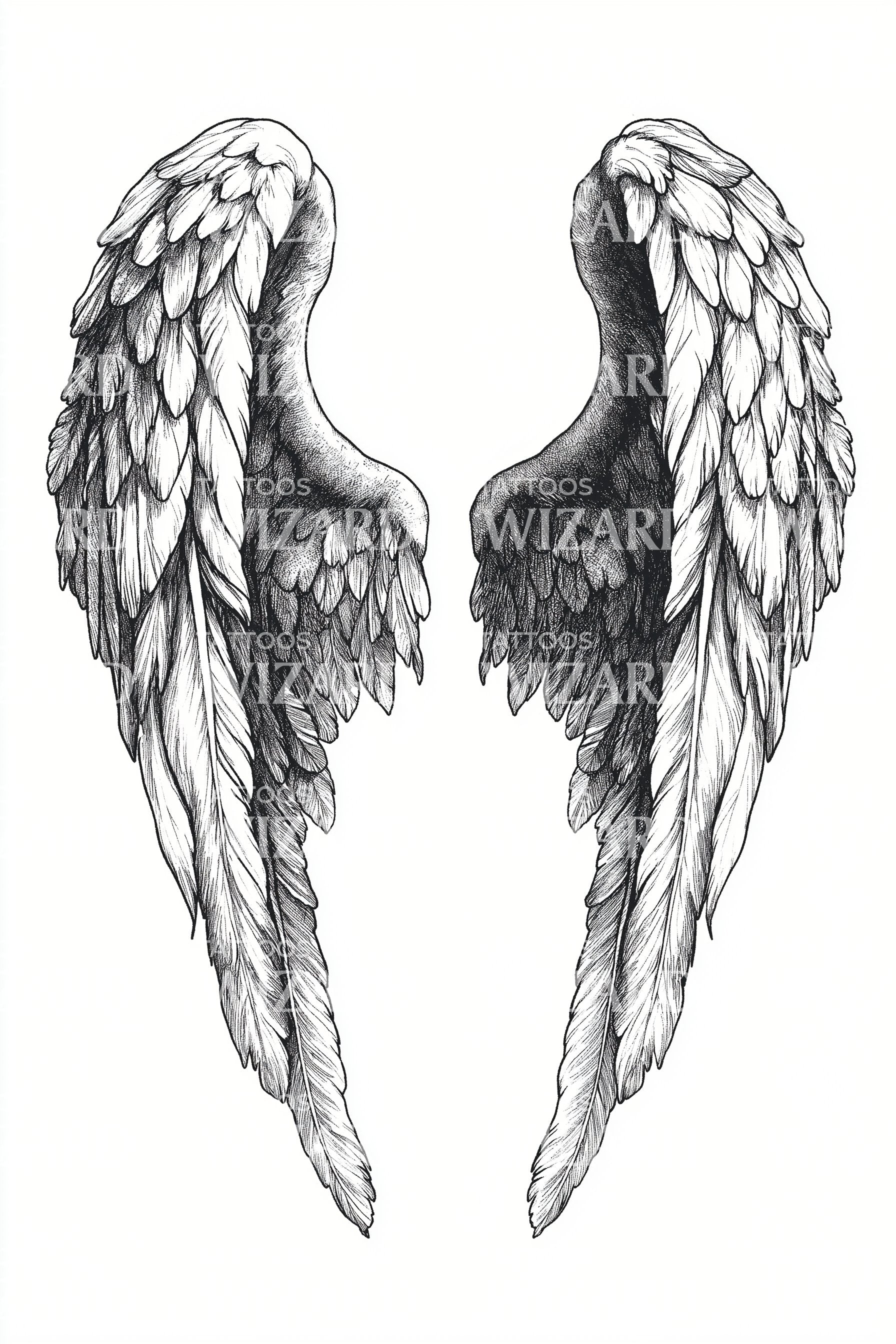 Engelshafte gefiederte Flügel Tattoo Vorlage