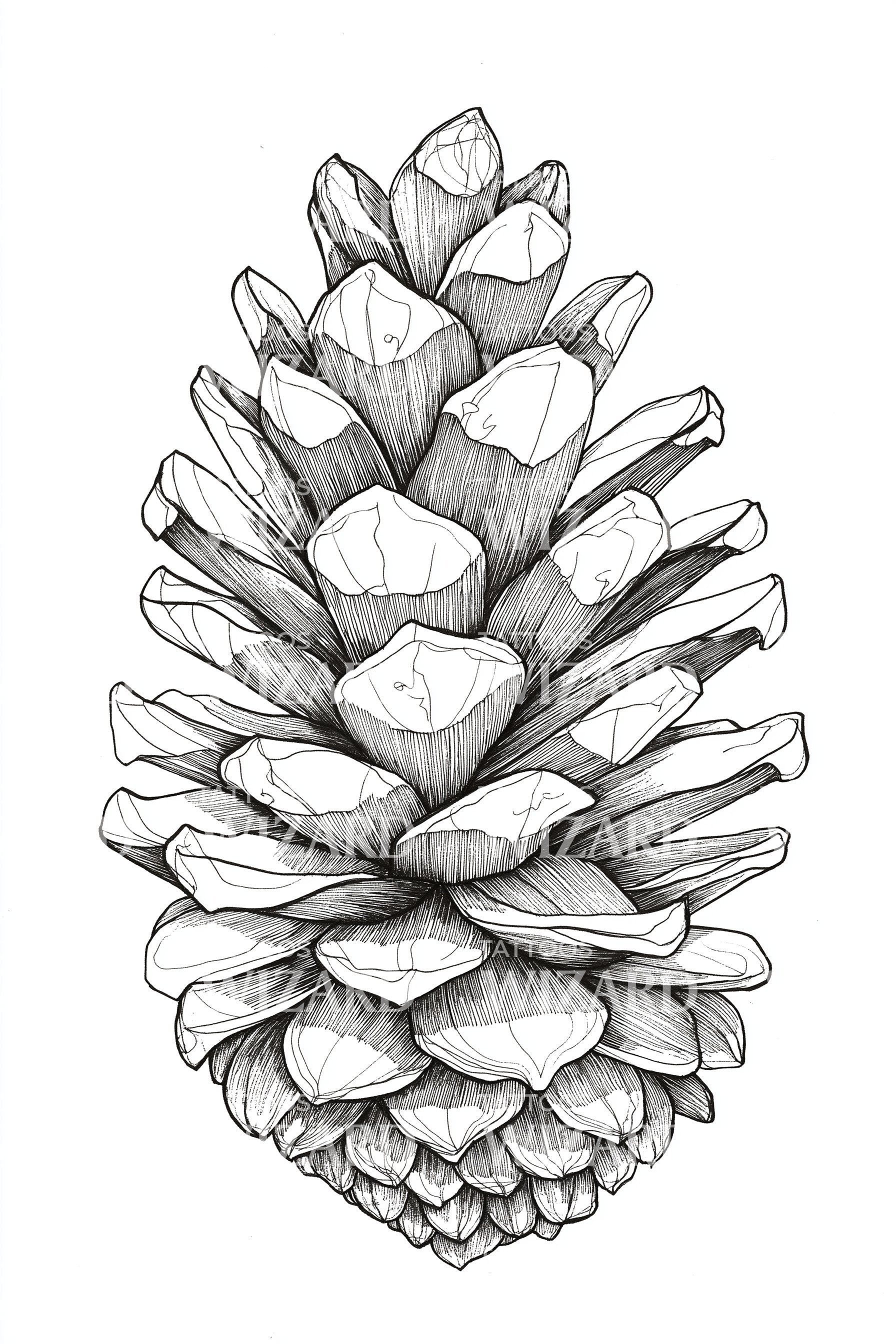 Pinecone wisdom, rendered fineline and minimal, holds the forest’s patience in your pulse. A botanical cone for the one who keeps tenderness armored, seeds saved for the right season. You claim quiet resilience, growth that waits. “Small vault of tomorrow, sealed in stillness.”