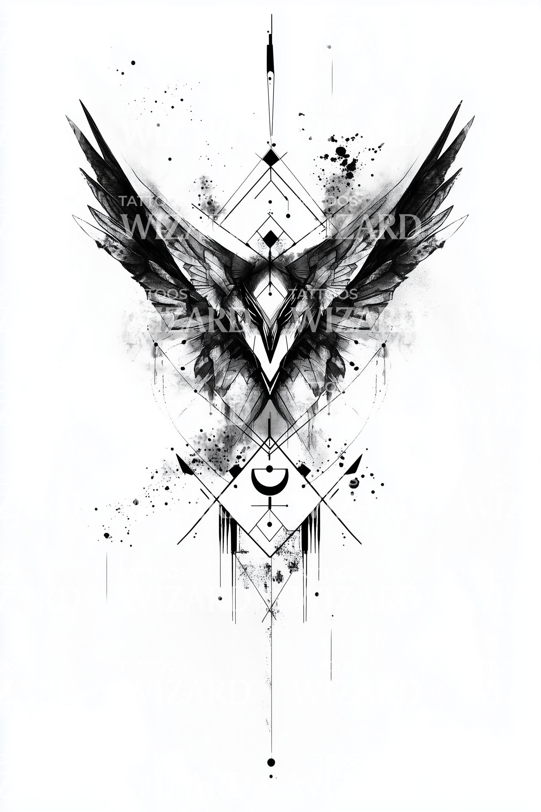 Wings held in geometry speak of discipline turned into freedom, a sacred symmetry where grief becomes altitude. Feathers remember every fall, then choose ascent again. Drawn to the one who craves order without losing wildness. Blackwork prayer: balance is a blade that flies.