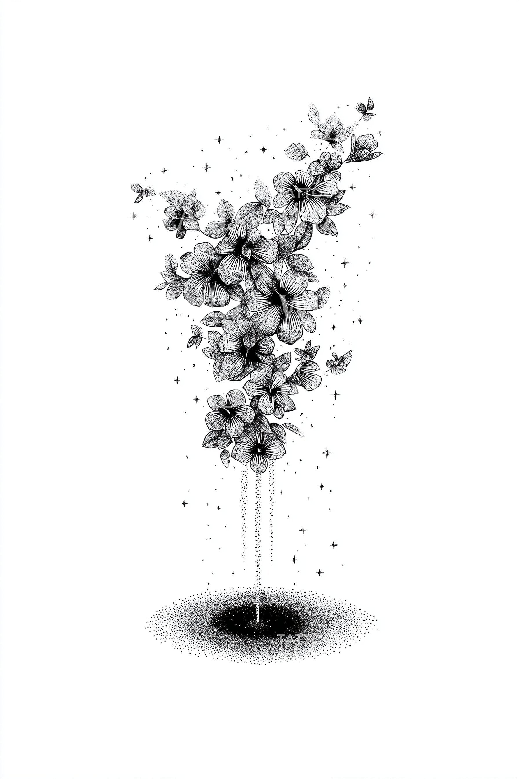 — Liam F. ✓ VerifiedInk gathers where the old self fell quiet, then rises again, botanical and abstract, like smoke learning a new language. Drawn to the ones who turn endings into portals and still choose softness. A minimal plume of bloom, siphoned from the void into light.
