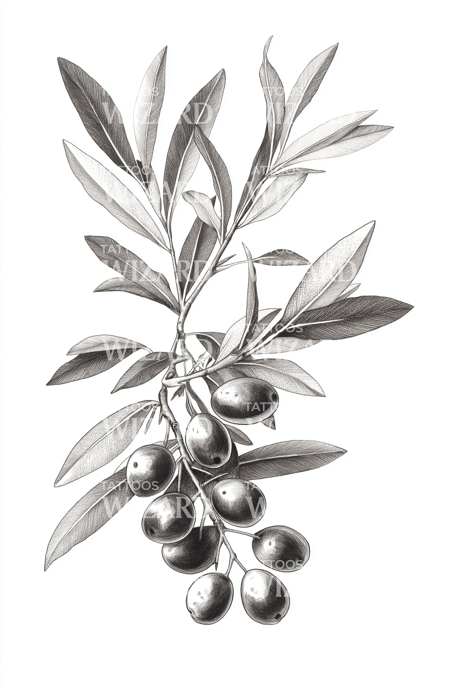 Monochrome Olive Sprig Tattoo Design