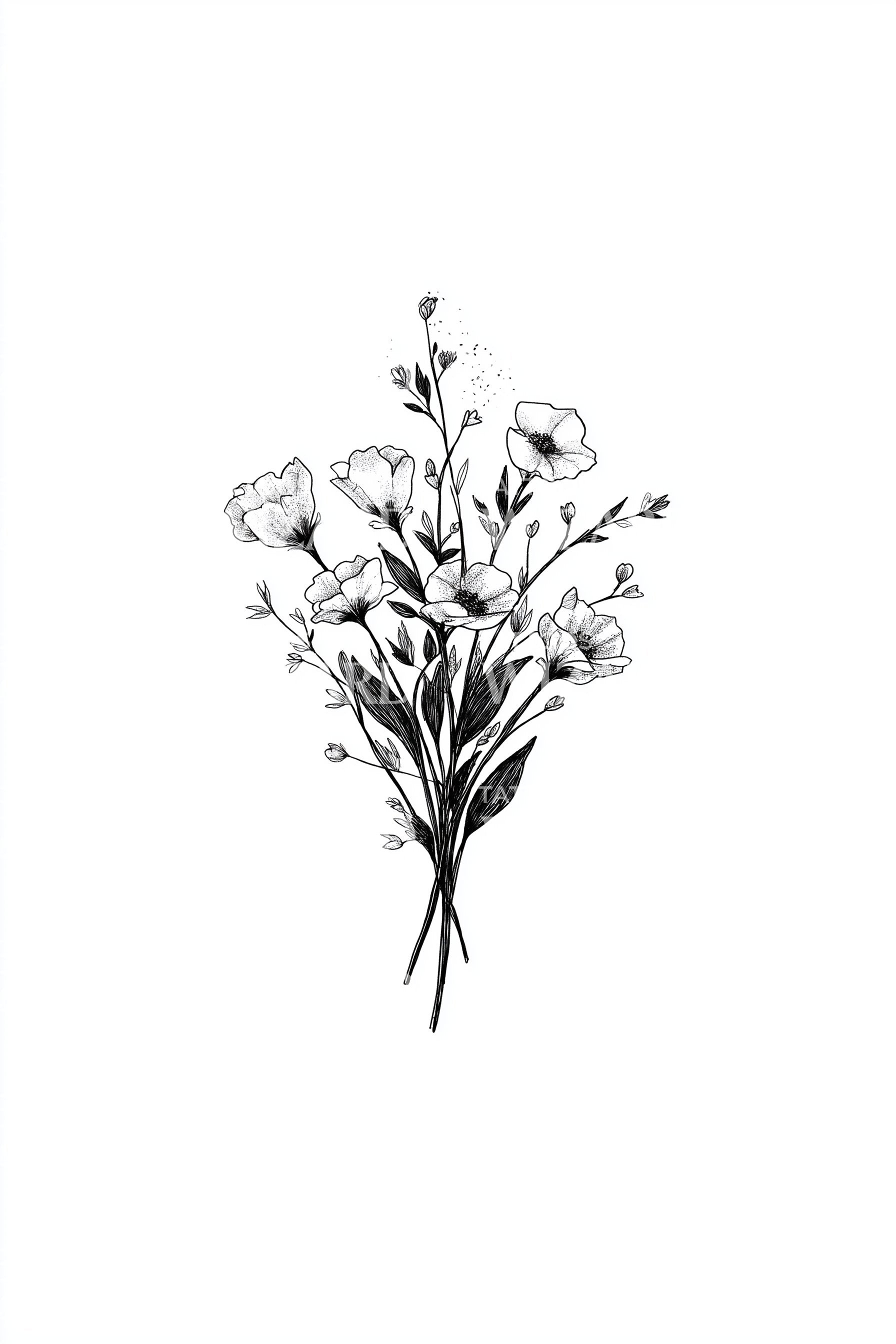 Tiny Floral Sprigs Tattoo Illustration