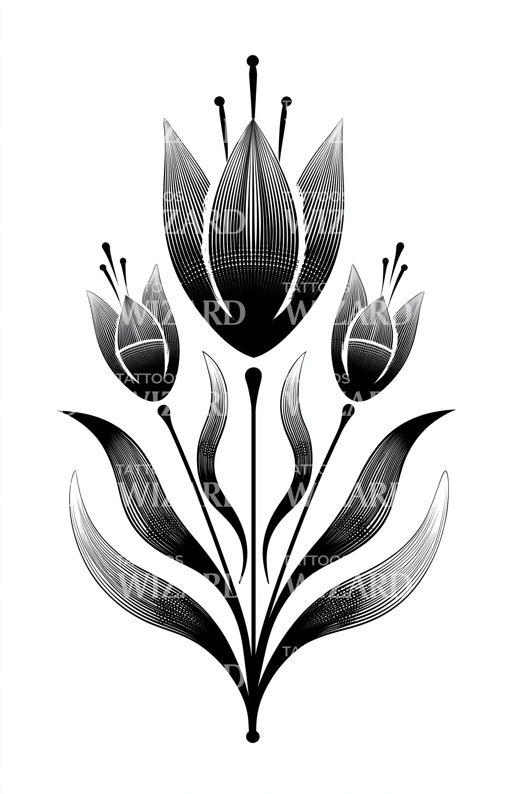 Bold Tulip Bouquet Tattoo Design