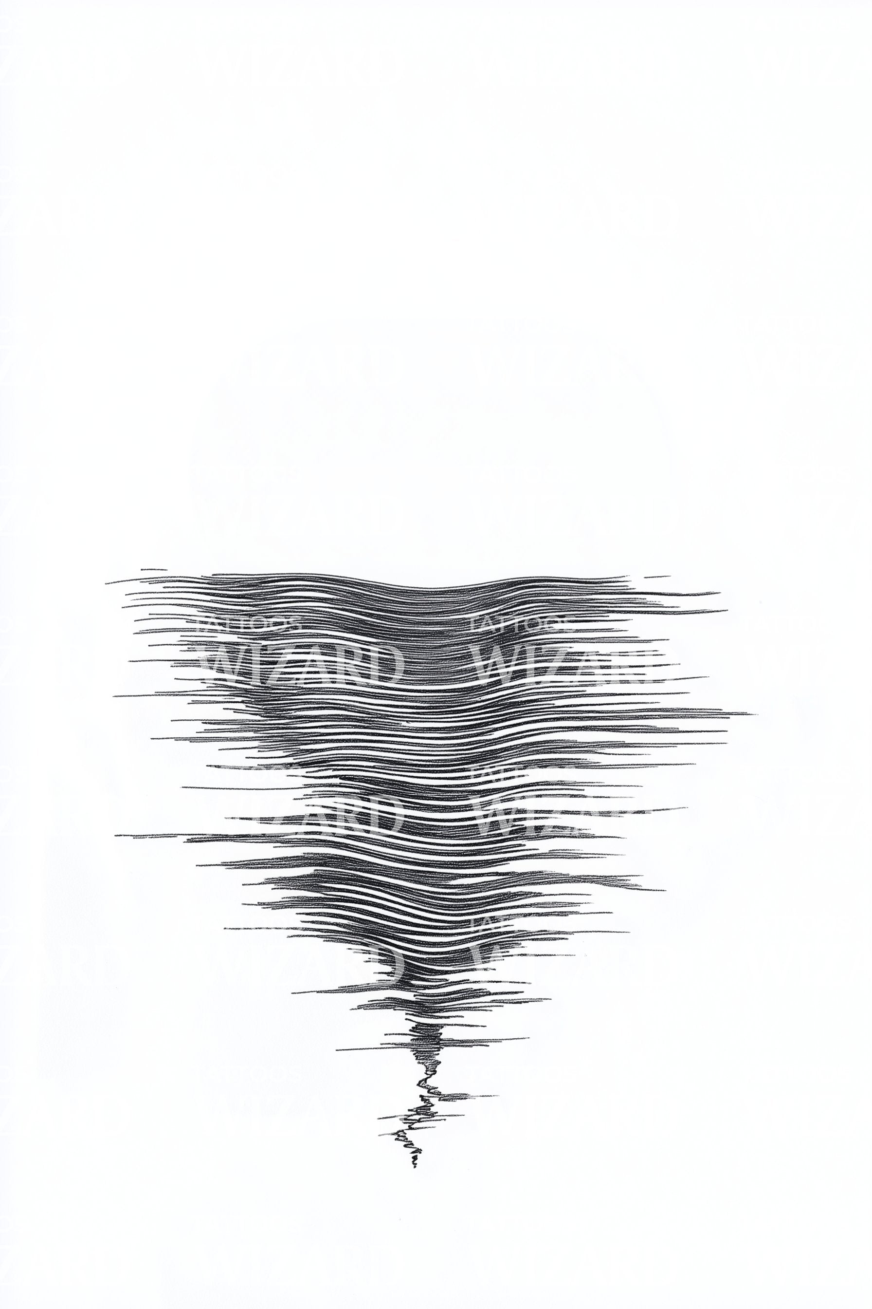 Whisper-thin ink lines gather into a tapering spiral, a wind-drawn vortex sketched in serene motion. Minimal, abstract waves suggest currents of change converging toward a still center. Symbol of clarity within chaos and breath-led presence. Worn close, it steadies rhythm, inviting quiet strength and tranquil focus.