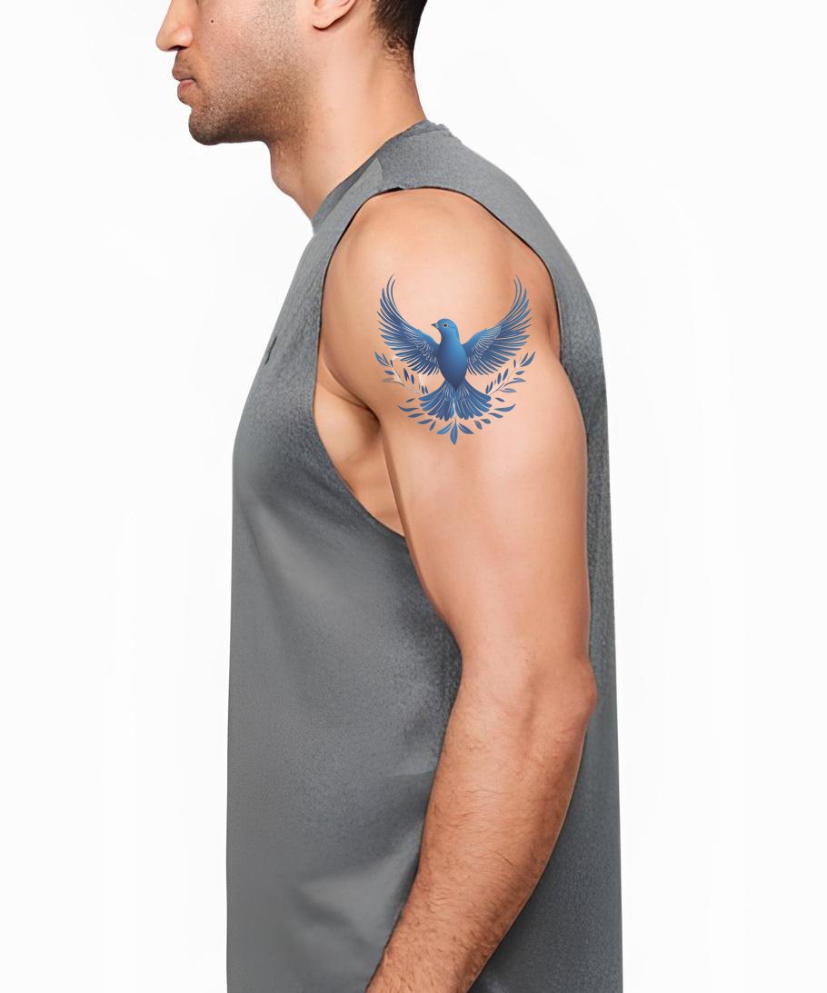 Σχέδιο Τατουάζ Μπλε Πουλί με Ανοιχτά Φτερά