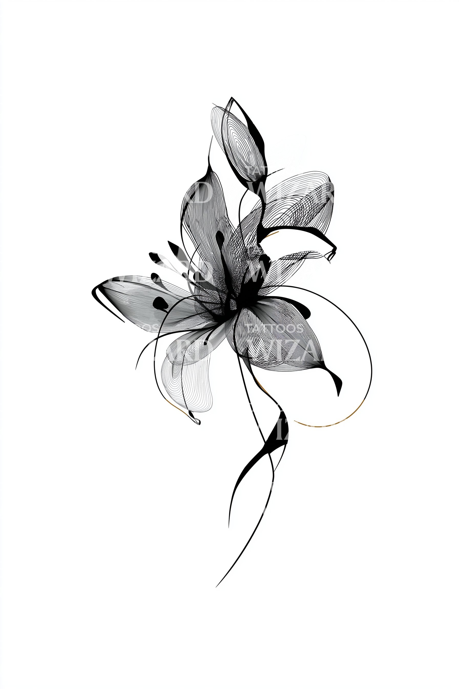 Ροή Μαύρου Λουλουδιού Κρίνος Σχέδιο Τατουάζ