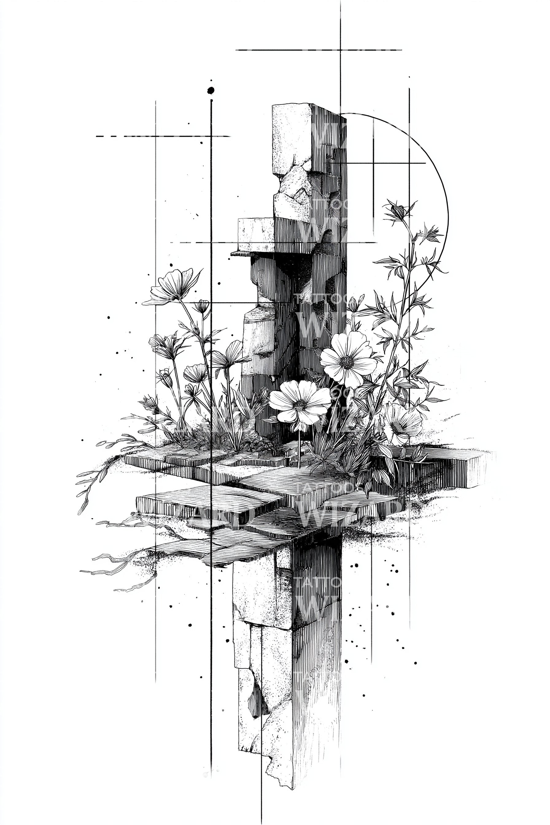 Σχέδιο Τατουάζ Γεωμετρία με Ανθικά Στοιχεία Cross