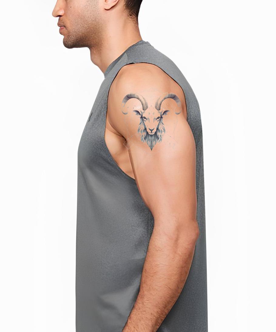 Μαγέψτε το πνεύμα σας με αυτό το εικονογραφικό σχέδιο τατουάζ Κριού. Αποδεχτείτε την αστρολογική σας πλευρά με αυτή την γεωμετρικά εμπνευσμένη τέχνη, άψογα σχεδιασμένη να αντανακλά τη ζωντανή ενέργεια του Κριού. Κατοχυρώστε το ζώδιό σας με αυτό το τατουάζ, μια τέλεια σύντηξη αστρολογίας και κομψής γεωμετρικής αισθητικής.