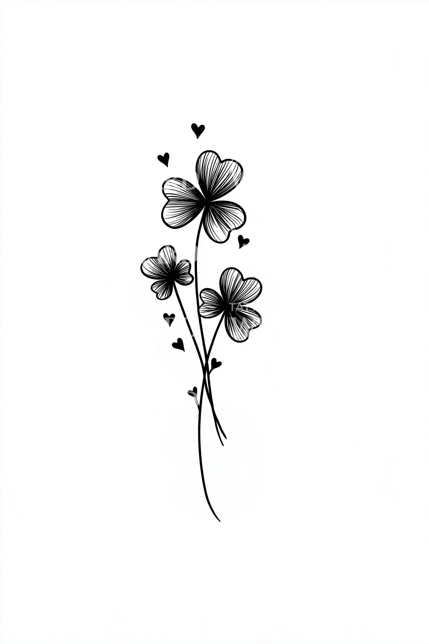 Fine line blossoms rise on slender stems, each petal kissed with tiny hearts. Minimal ink, airy spacing, and soft curves create a delicate, cute whisper of bloom. Symbolizing gentle growth and love’s quiet courage, this design wraps the wearer in lightness, tenderness, and everyday beginnings, hopeful new chapters.