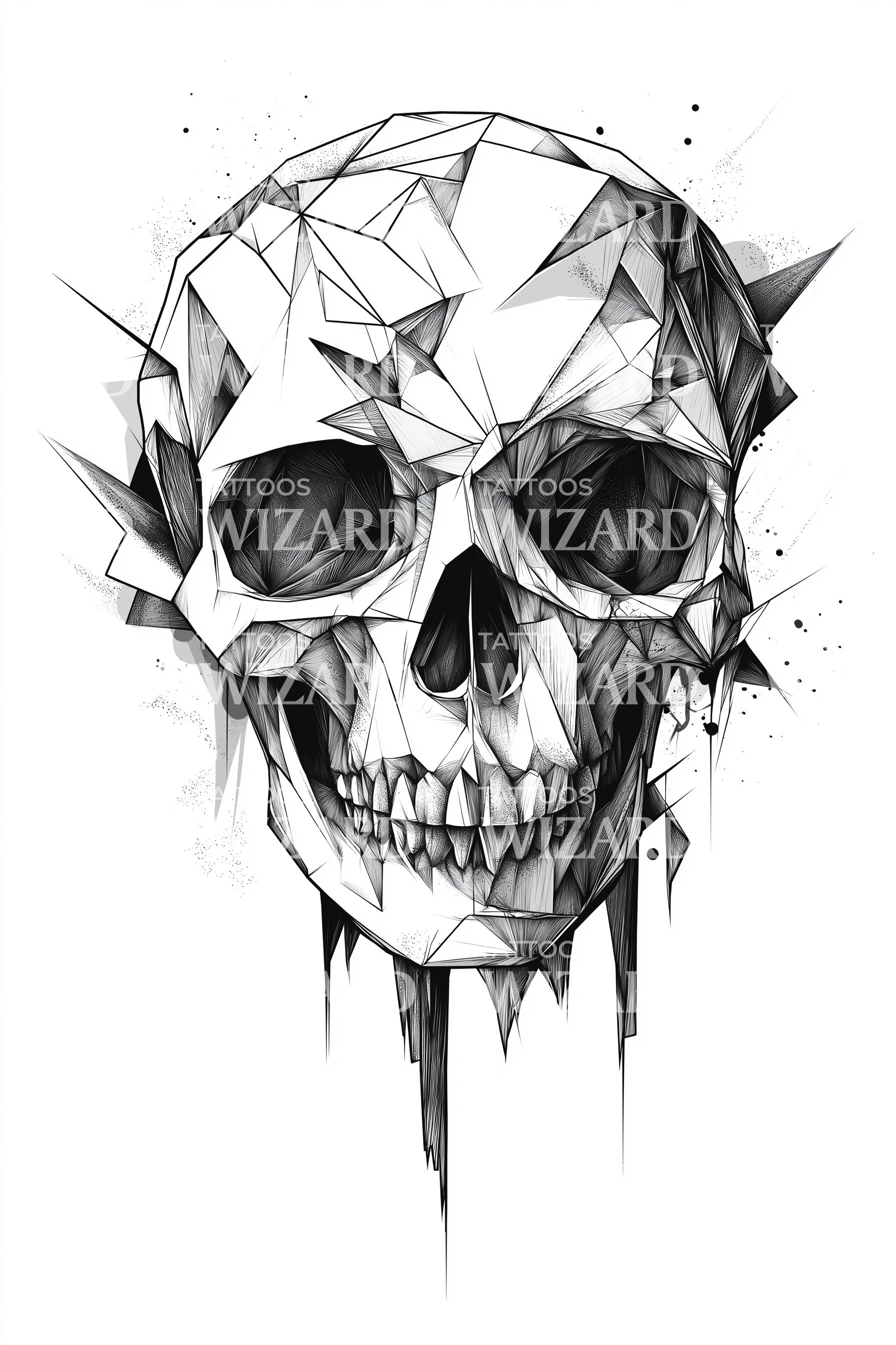Απελευθερώστε μια πιο σκοτεινή πλευρά με αυτό το γεωμετρικό σχέδιο τατουάζ Κρανίου. Ορισμένο από πολυεδρικές σκιές και αιχμηρές γωνίες, συνδυάζει λαμπρά τους κόσμους του ανατριχιαστικού και του καλλιτεχνικού. Διακοσμημένο με μια μοναδική σκοτεινή αισθητική, αυτό το εκπληκτικό κομμάτι μετατρέπει την πολύπλοκη γεωμετρία σε ένα τραχύ, μαγευτικό έμβλημα τόλμης.