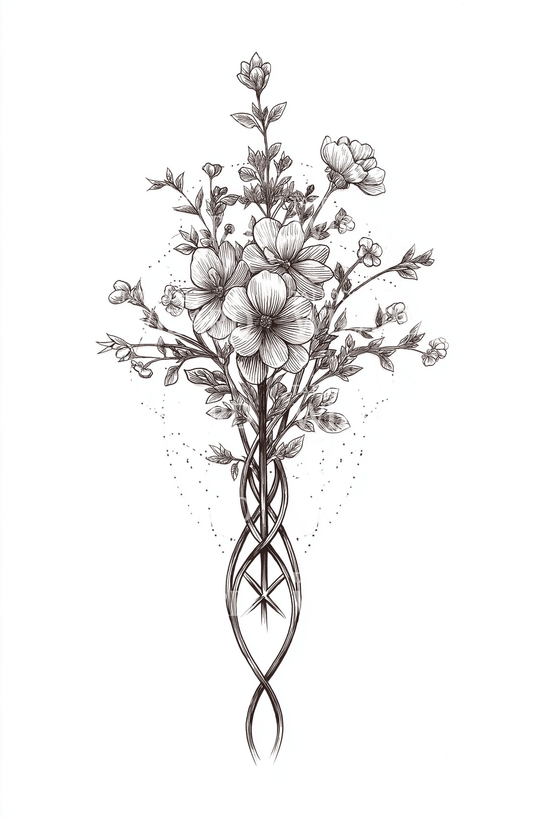 Celtic Stem Bouquet Tattoo Design
