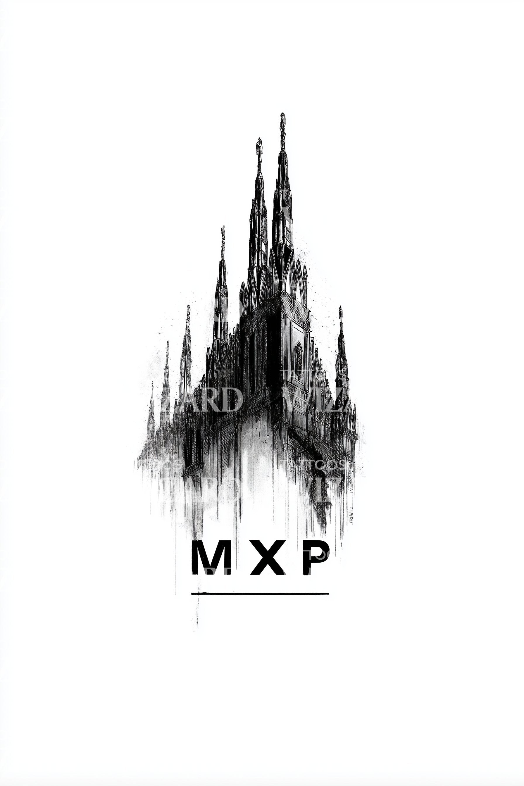 Stone-light spires rise in precise black lines, the Duomo distilled to a floating silhouette over MXP. Architectural ink drips recall city rain and departures. A symbol of Milan’s ascent and return, it marks pilgrimage and homecoming. Worn, it feels calm, grounded, and quietly ambitious. Minimal architecture for wanderers.