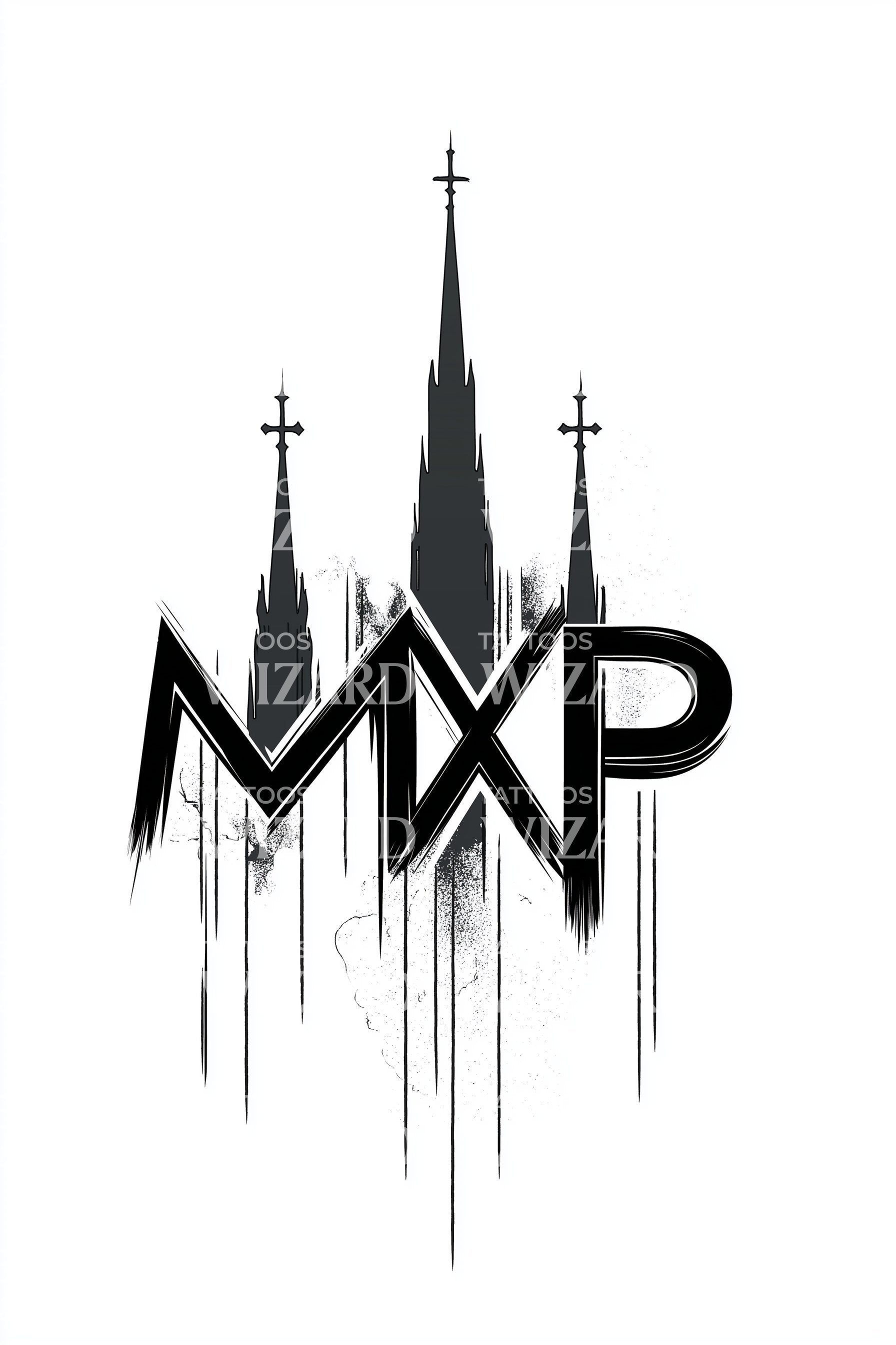 Ink-sketched spires rise behind bold MXP, echoing Milan’s Duomo. Gritty drips meet precise cathedral lines, capturing architecture in motion. MXP marks departures and arrivals, a compass of courage and return. Wearing it feels like city light on stone: soaring, grounded, unmistakably urban, honoring sacred ambition and restless travel.