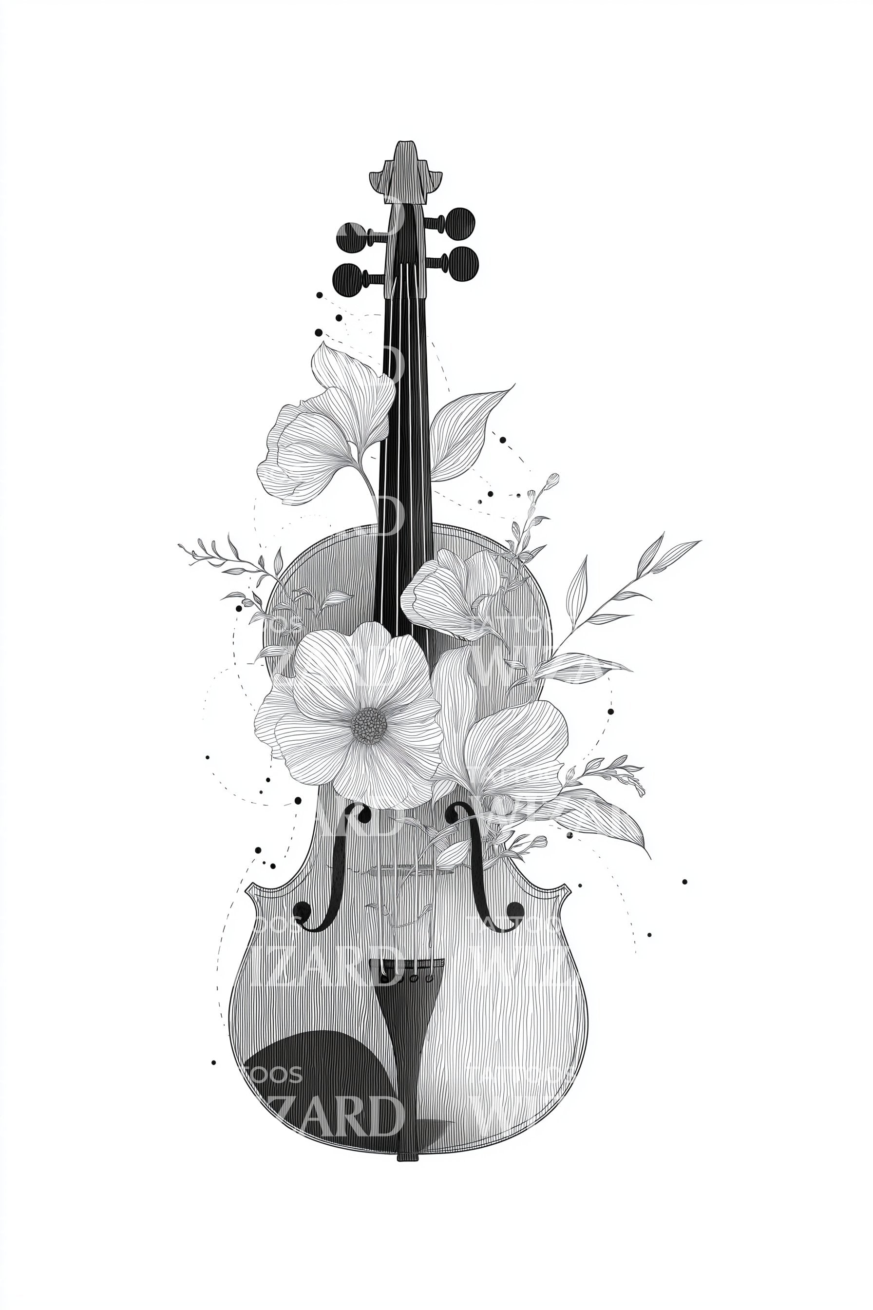 Floral Cello Music Tattoo Design