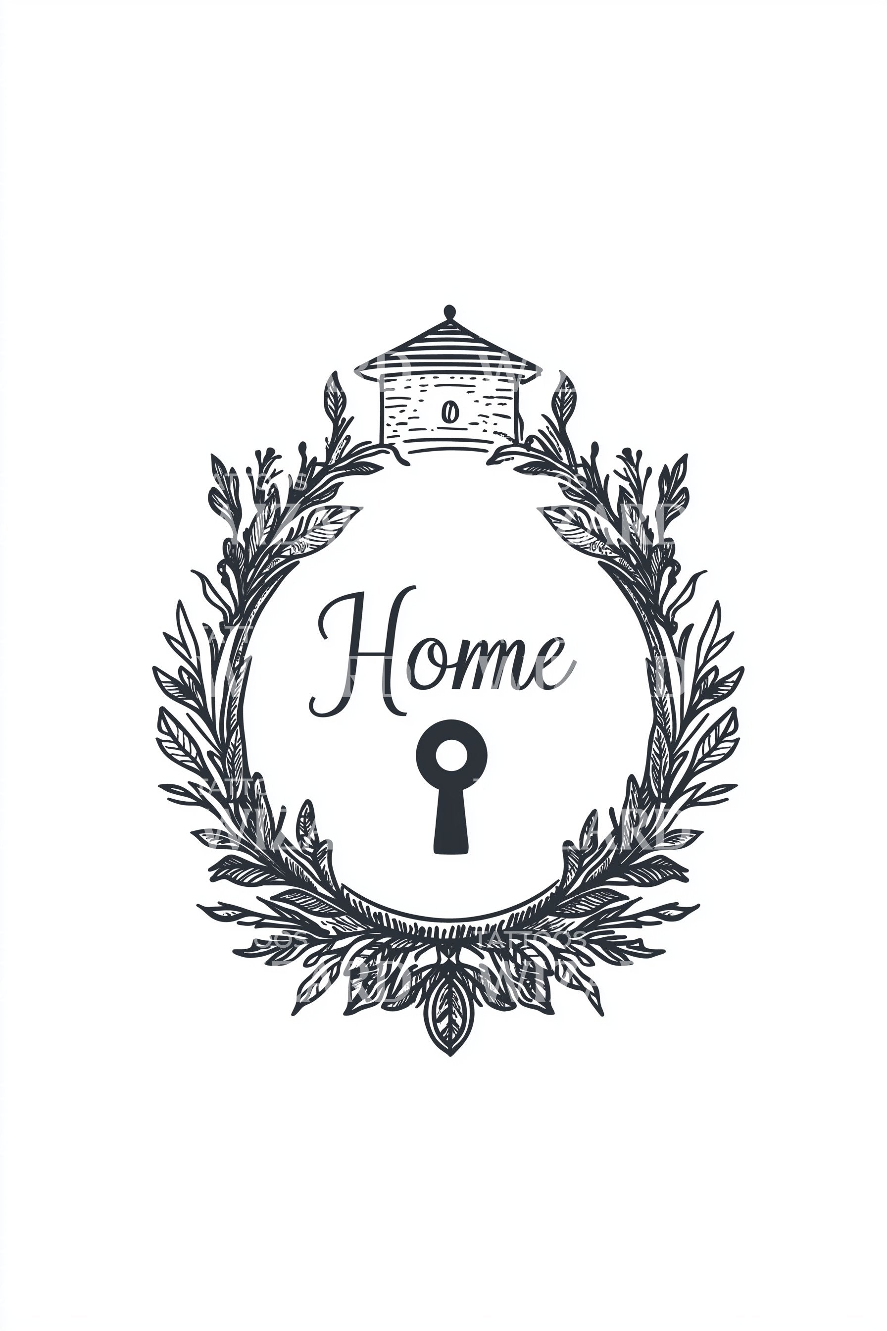 Ornamental laurel wreath curls in fine ink, cradling script that whispers Home, topped by a tiny rooftop and anchored by a keyhole. Laurel crowns belonging; the circle promises continuity; the key signals security, entry, trust. Wearer feels sheltered, honored, and rooted, carrying sanctuary wherever footsteps wander.