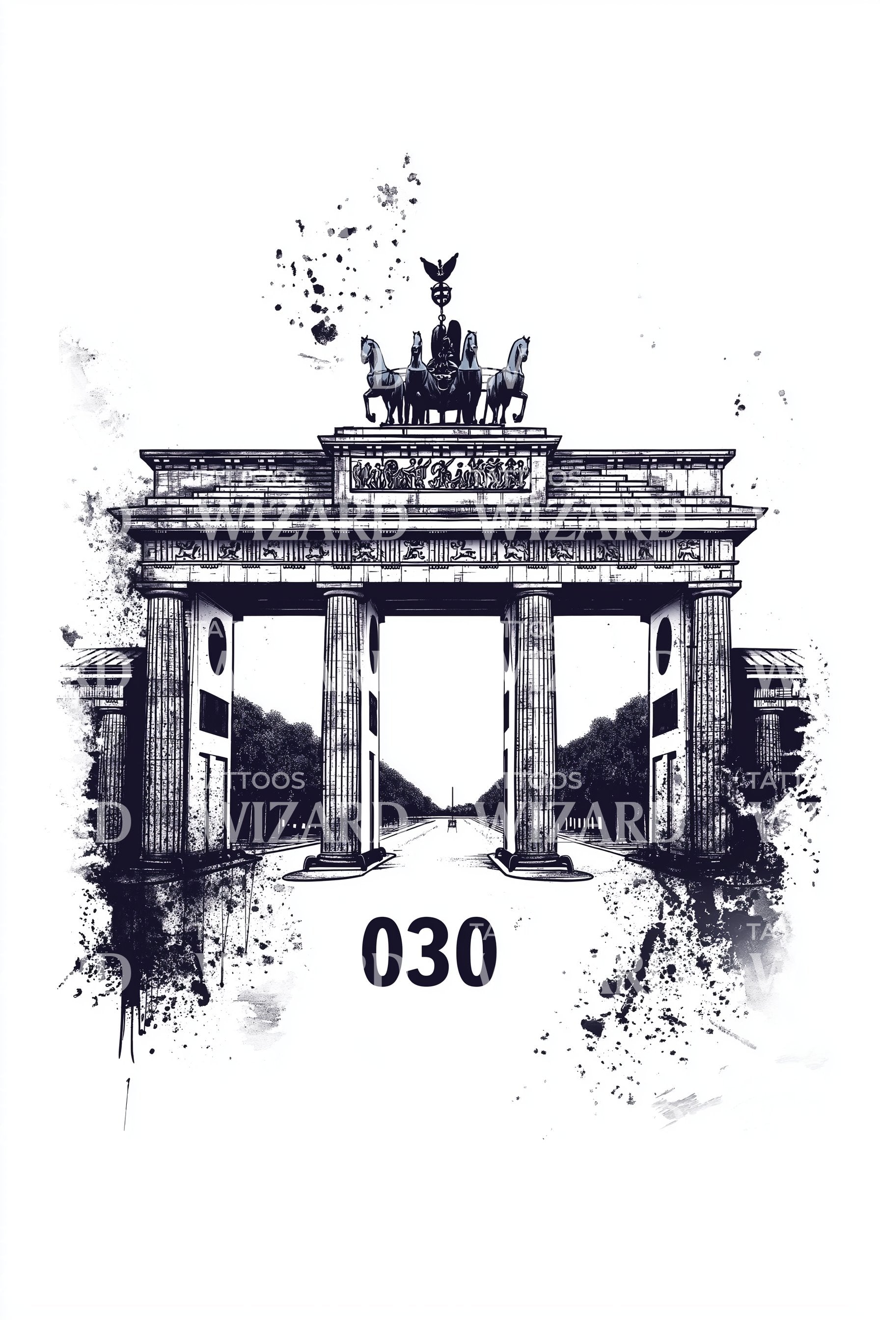 Berlin 030 Gate Ink Splash Tattoo Design