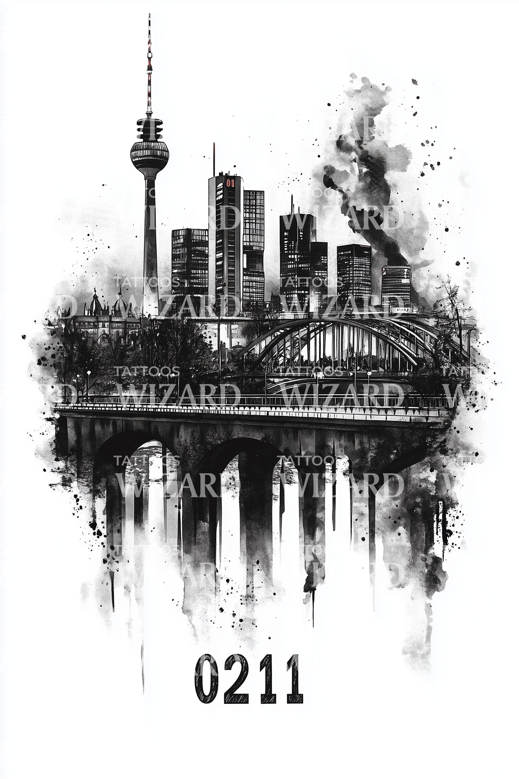 Dusseldorf 0211 River Skyline Tattoo Illustration