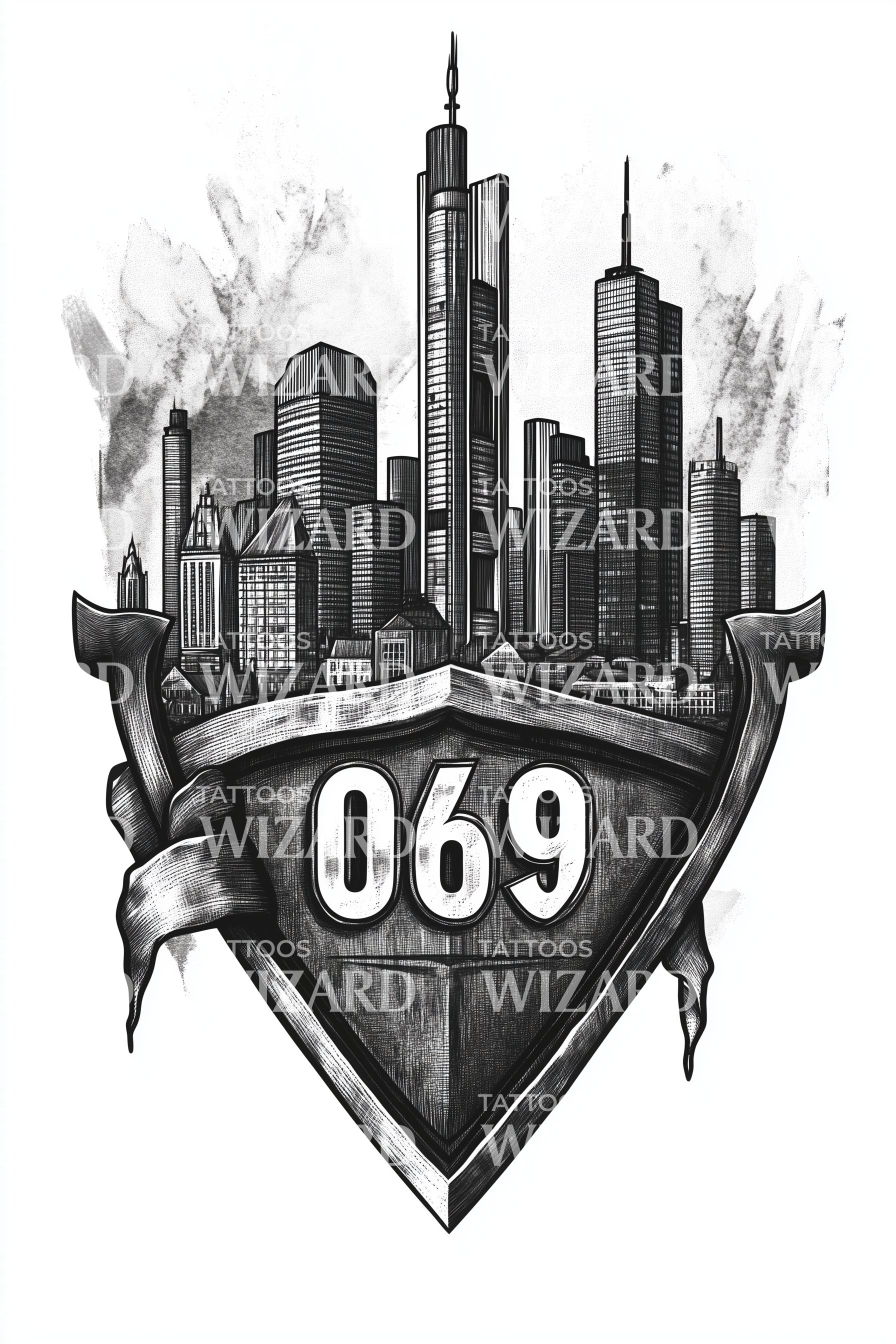 Frankfurt 069 Skyline Shield Tattoo Idea