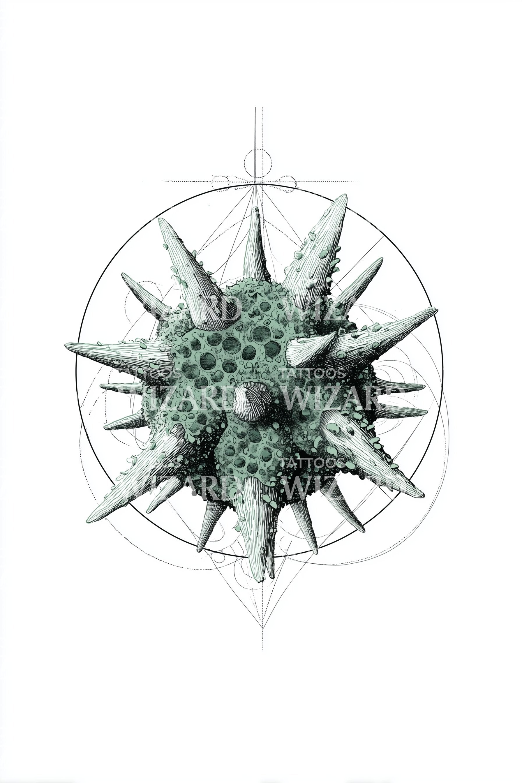 Spiked Urchin Compass Tattoo Design
