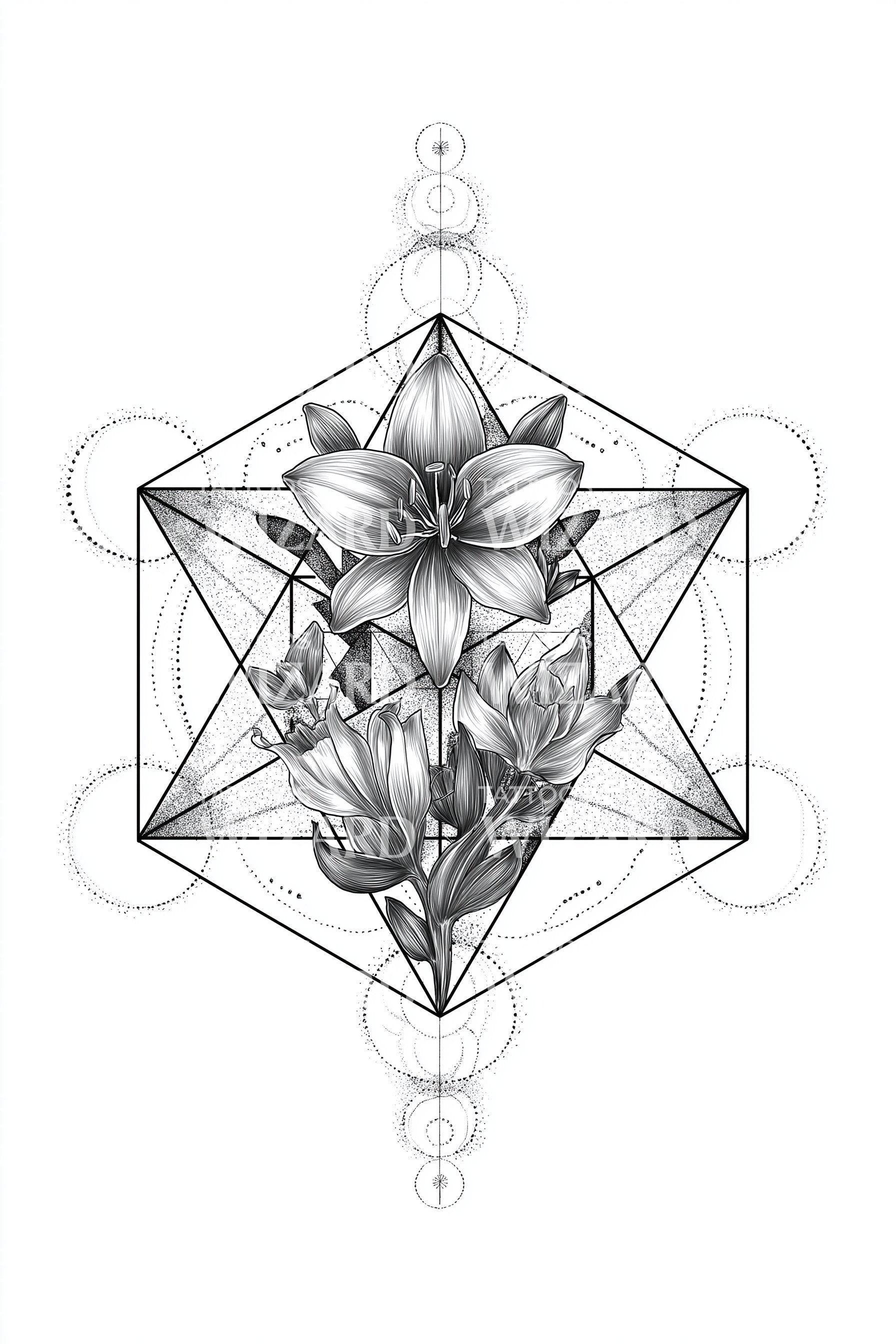 Koe pyhän geometrian viehätys tässä monimutkaisesti suunnitellussa Mandala-tatuoinnissa. Sädehtivä lootus symmetrisessä ympyrässä symboloi rauhaa ja kosmista tasapainoa. Tämä teos on ajaton kuvaus henkisestä heräämisestä, täydellinen niille, jotka arvostavat syvällistä ja ajatuksia herättävää taidetta.