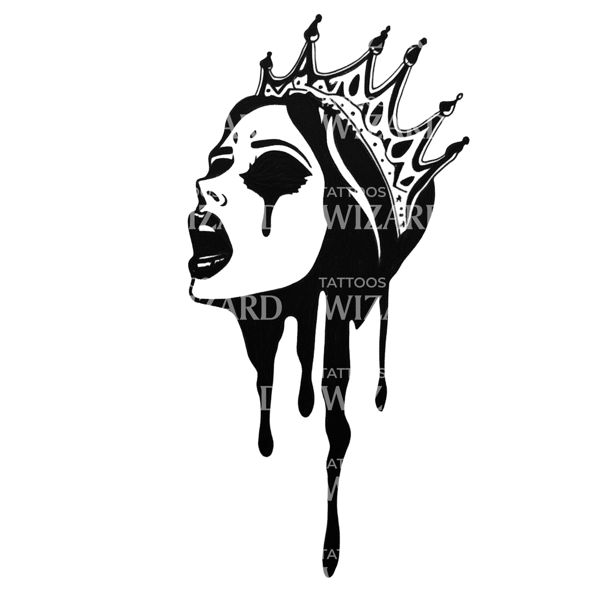 Syleile sisäistä kuninkaallisuuttasi tämän ainutlaatuisen blackwork-tatuointisuunnittelun avulla. Sulava kuningattaren kruunu kuvastaa pimeyden ja arvokkuuden yhdistelmää. Tippuvat yksityiskohdat tuovat konseptuaalista särmää, tehden siitä voimakkaan symbolin mysteerille ja majesteettisuudelle. Täydellinen valinta sinulle, joka haluat kantaa vahvuuttasi ihollasi.
