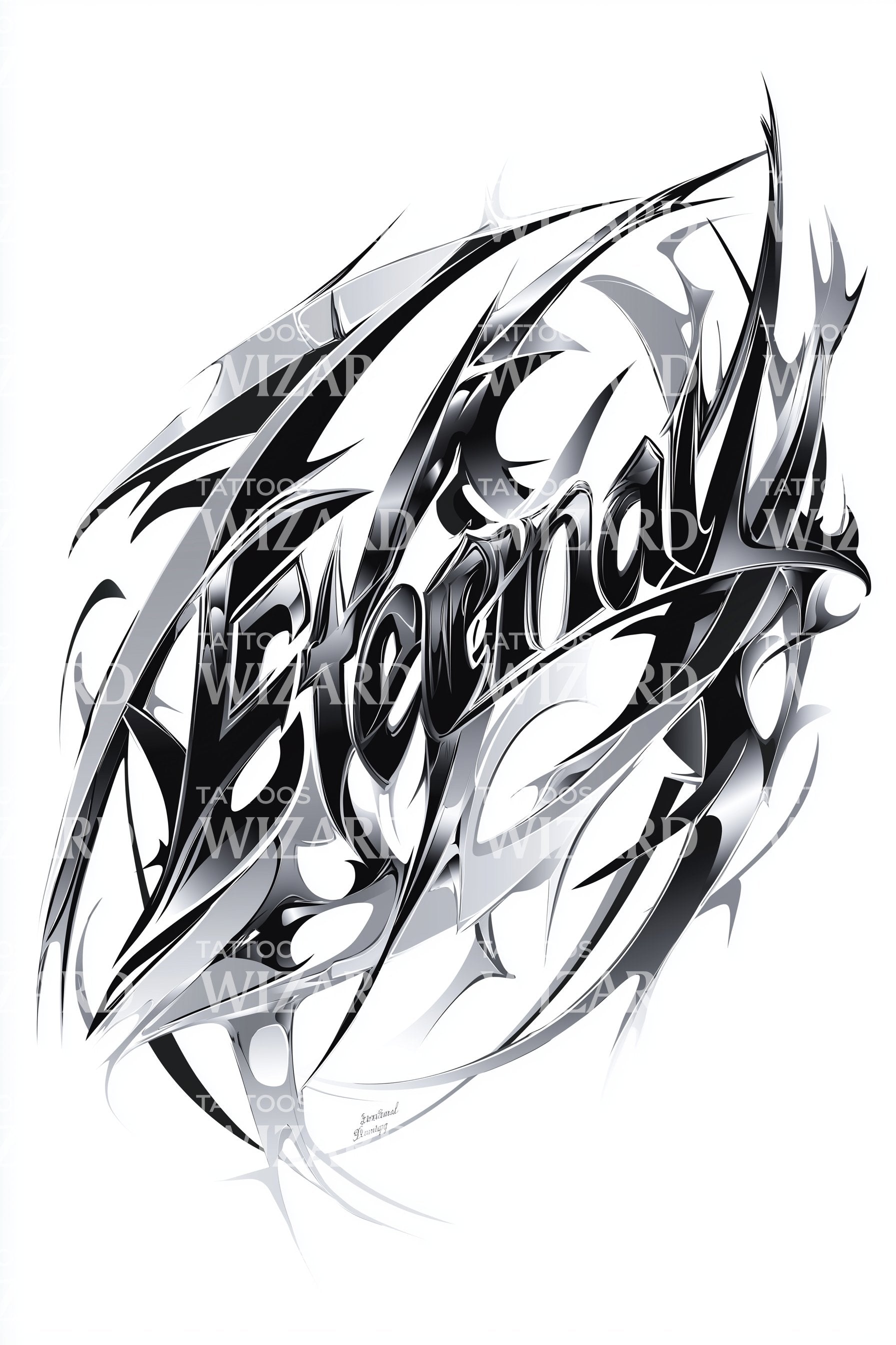 Sukella muinaisen perinteen maailmaan tämän rohkean, heimotyylisen tatuointisuunnittelun myötä. Monimutkaiset mustat visuaaliset linjat yhdistyvät salaperäiseen kirjoitukseen, ja tämä teos symboloi ikuisuuden olemusta. Omaksu ainutlaatuinen tyylisi, heimokirjaimilla, jotka korostavat esteettisen vetovoiman intensiteettiä.