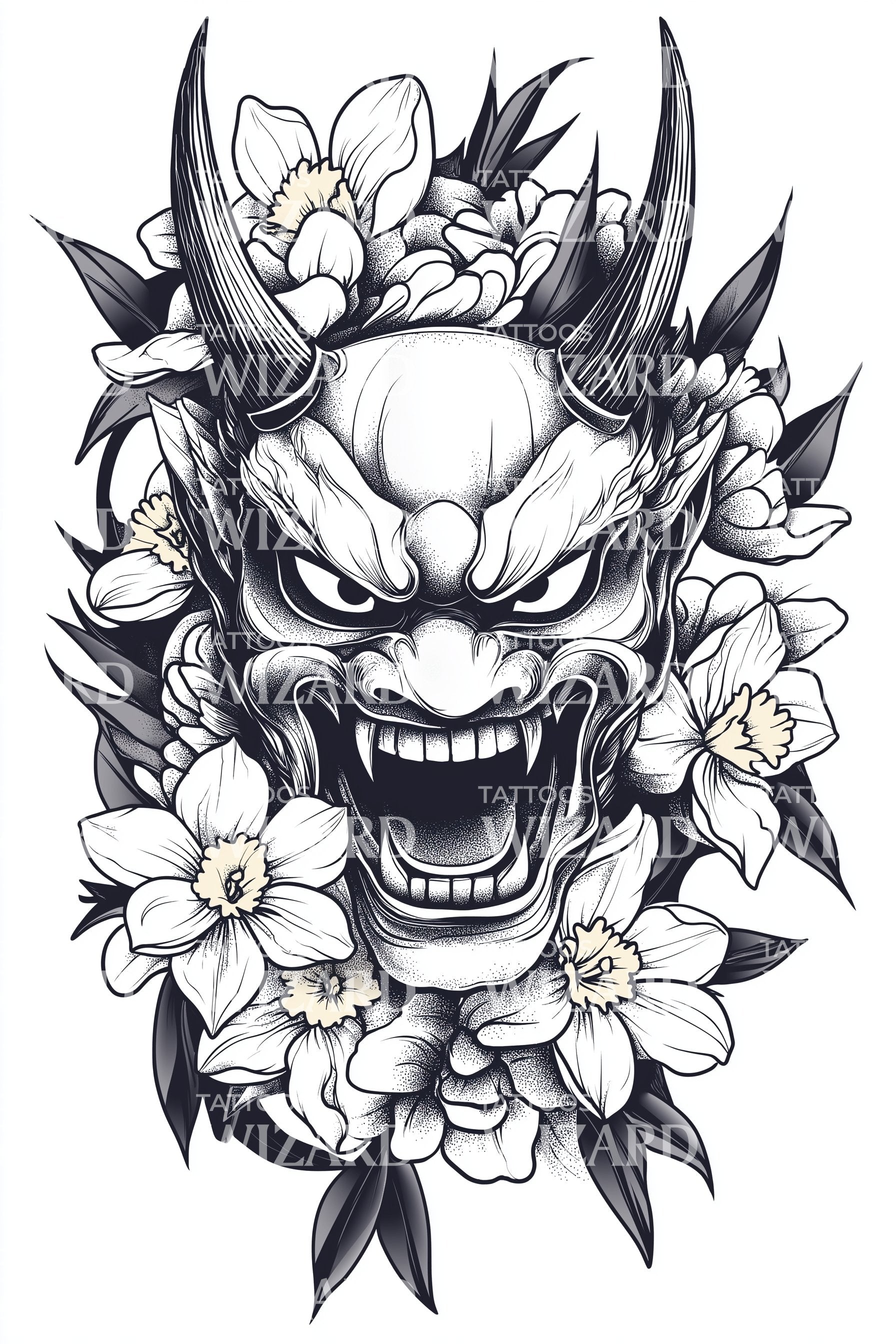 Sukella itämaisen viehätyksen maailmaan tämän blackwork-tyylisen perinteisen Oni-maskitatuoinnin myötä. Se kutsuu esiin raa'an intensiteetin, kuin muriseva demoni, ja uskomattoman yksityiskohtainen mustetyö ilmentää voimakasta rohkeutta. Ota vastaan vahvempi puolesi ja tee vaikutus tällä myyttisen voiman voimakkaalla symbolilla.