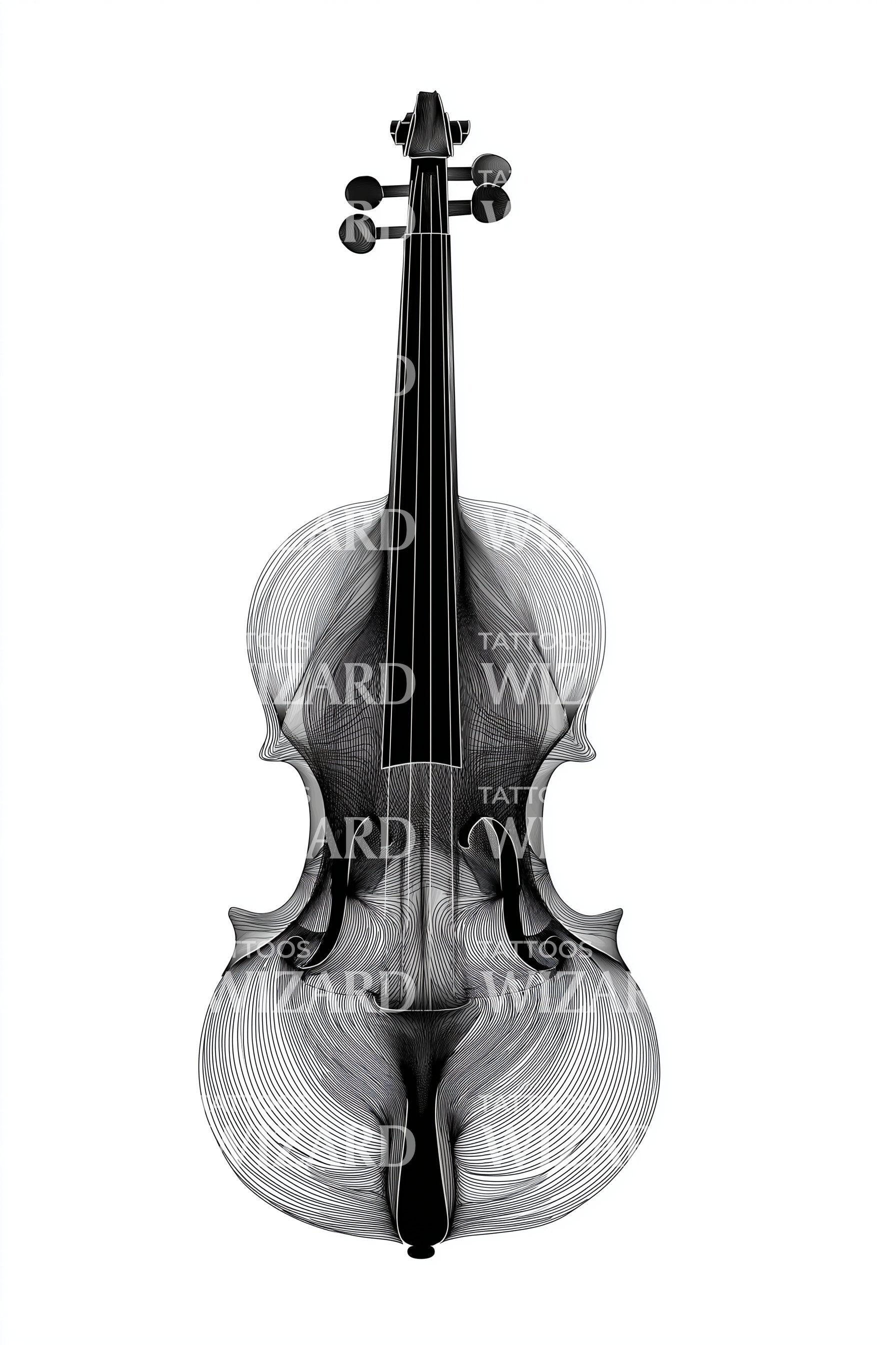 Tämä musta-harmaa tatuointisuunnitelma vangitsee klassisen viulun sinfonian upealla yksityiskohtaisuudella. Kuvituksellinen kunnianosoitus orkesterille, jokainen kaari ja kieli tanssii musiikin tahdissa, muuttaen ihosi kunnianosoitukseksi näiden ajattomien soittimien eleganssille. Ihanteellinen musiikin ystäville.