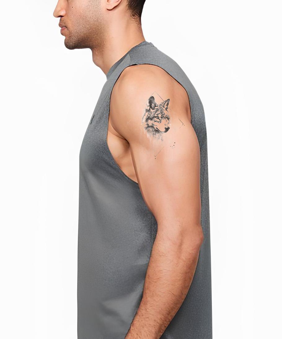 Vapauta villi henkeni tämän vaikuttavan pisteviivatyylisen tatuointisuunnittelun avulla. Siinä esiintyy mystinen musta ja harmaa susi mäntymetsän keskellä, vangittuna kiehtovaan timantin muotoon. Tämä teos on täydellinen eläinten ystäville ja niille, joita vetää puoleensa luonnon villin kauneuden rauhallisuus.