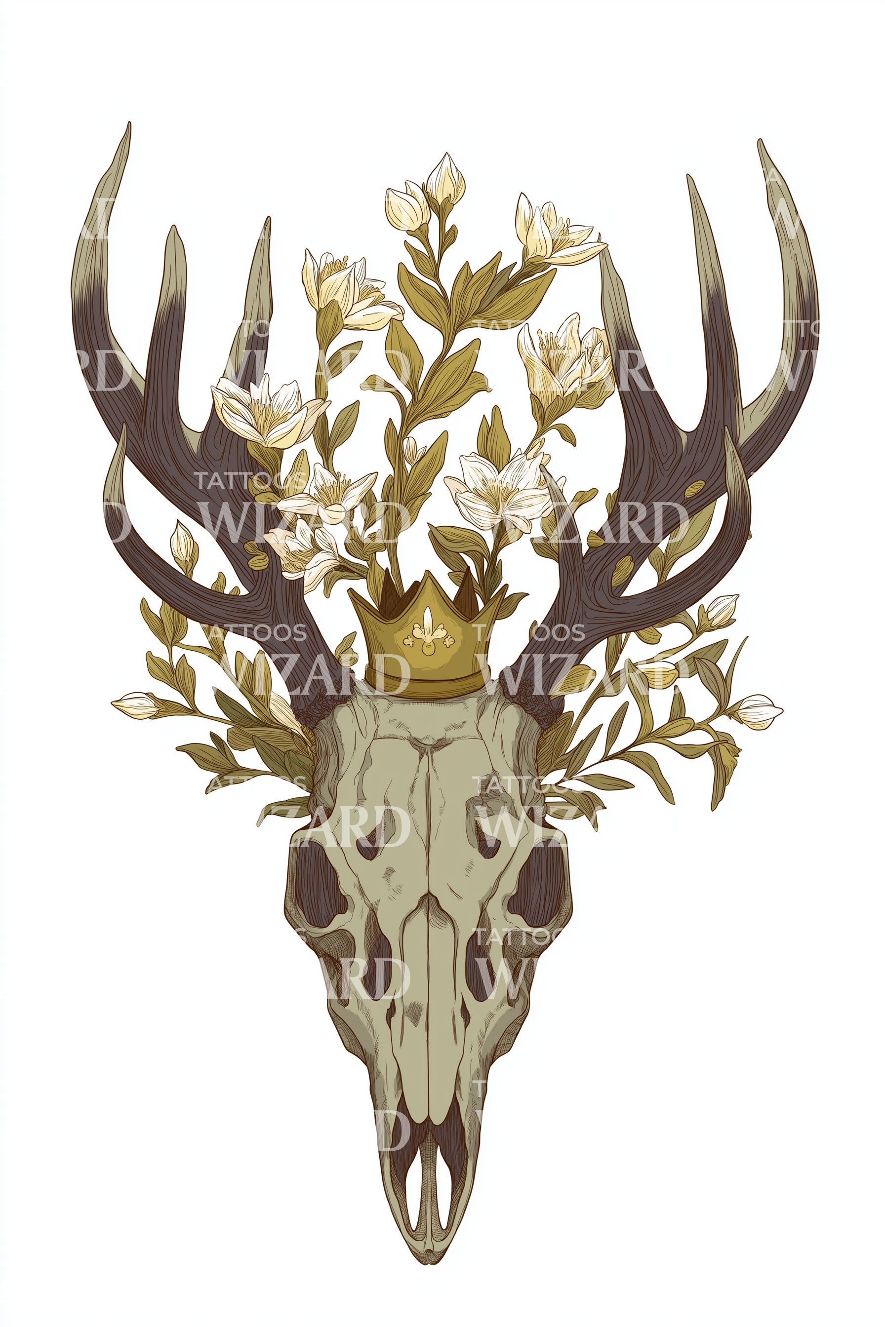 Design de tatouage de crâne de cerf à bois