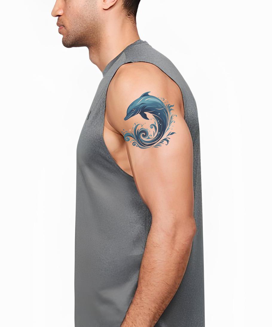 Tatouage représentant un dauphin sauteur fusionnant avec l'eau