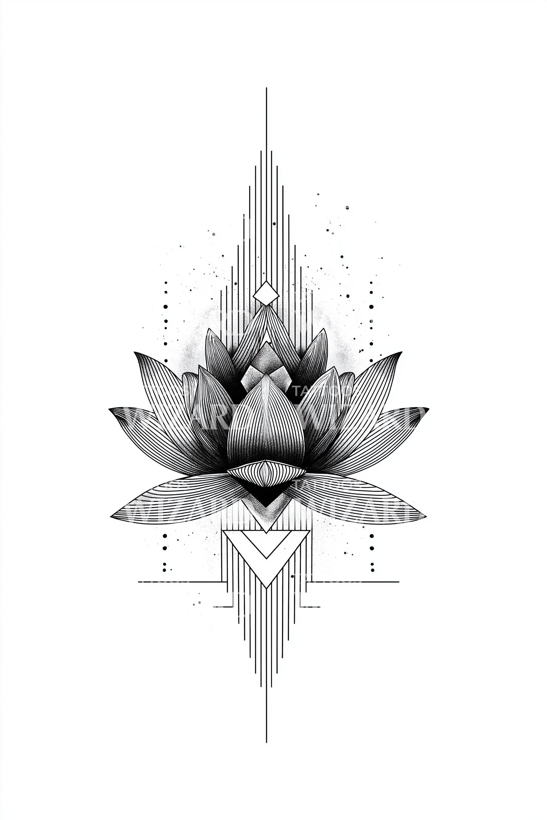 Ce motif de tatouage ornemental fusionne avec finesse des motifs sacrés de lotus et de temple avec des motifs géométriques saisissants. Il présente une technique de ligne fine qui met en valeur le détail exquis du design. Apportant une touche de divinité et de mystère spirituel à votre œuvre corporelle, cette pièce est véritablement un témoignage de la beauté de la géométrie sacrée.