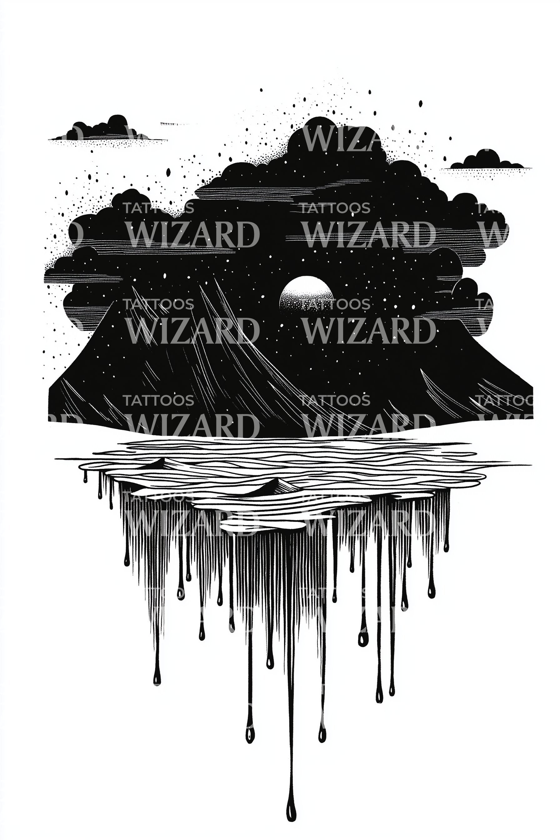 Dripping Night Lake Scene Tattoo Illustration