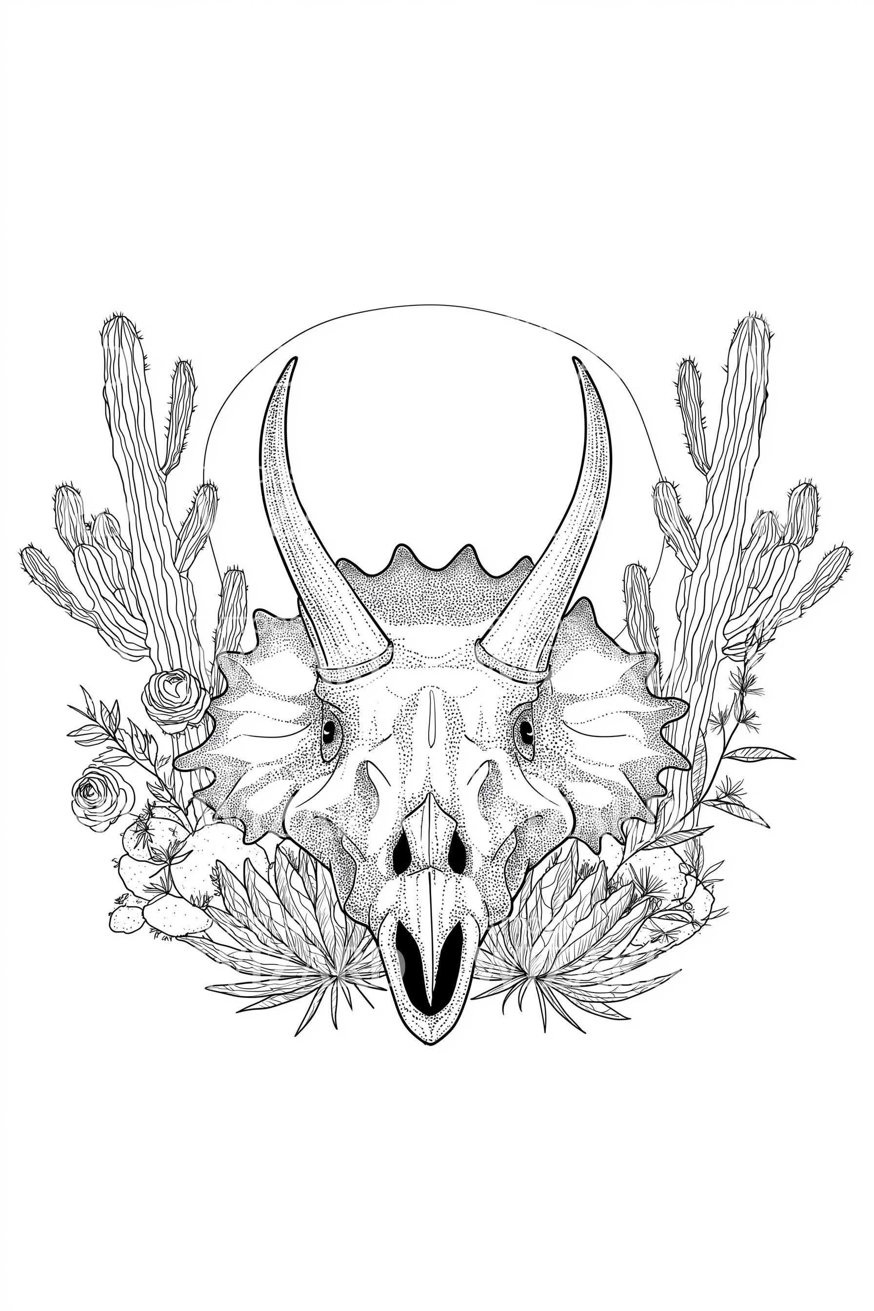 Antler Skull Botanical Tattoo Design