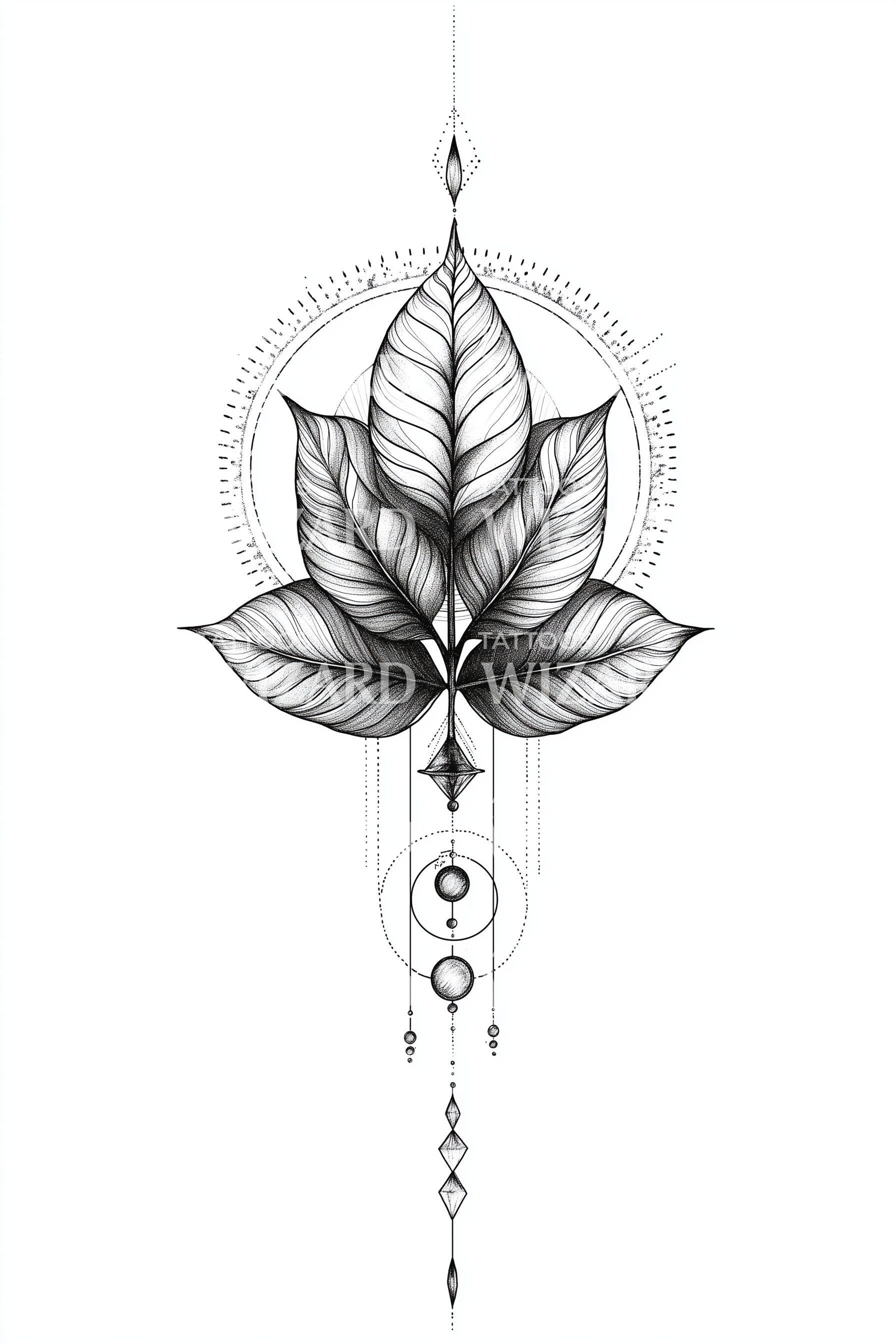 Geometric Leaf Talisman Tattoo Design